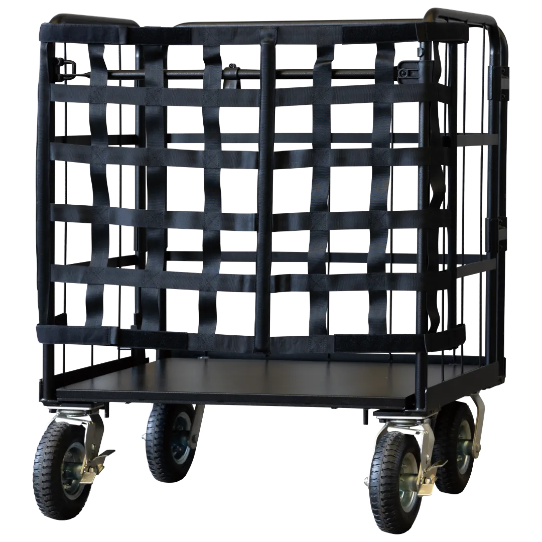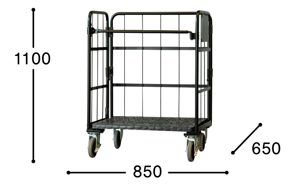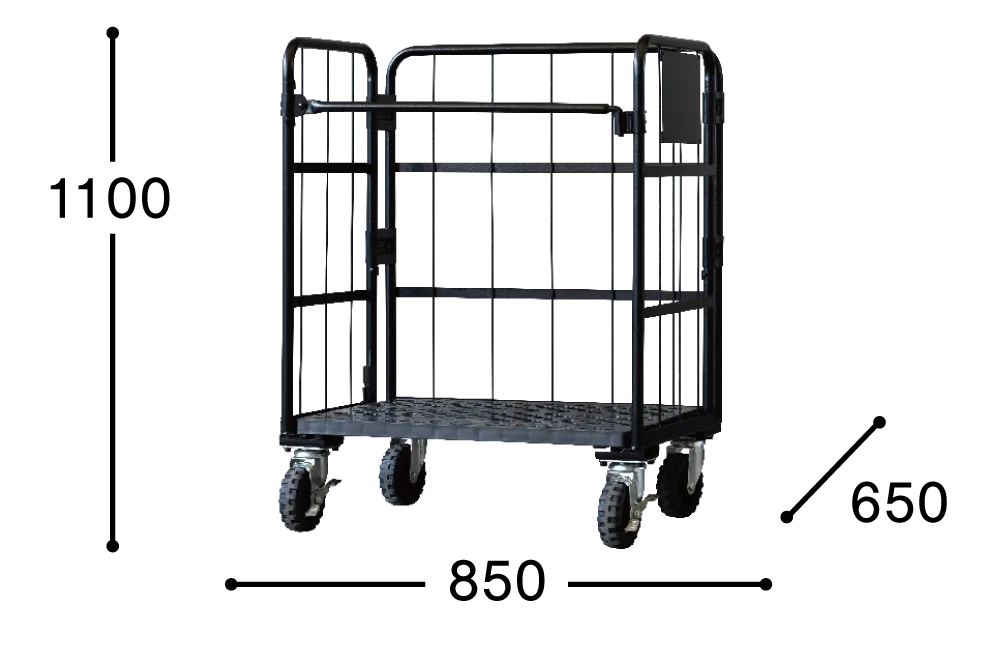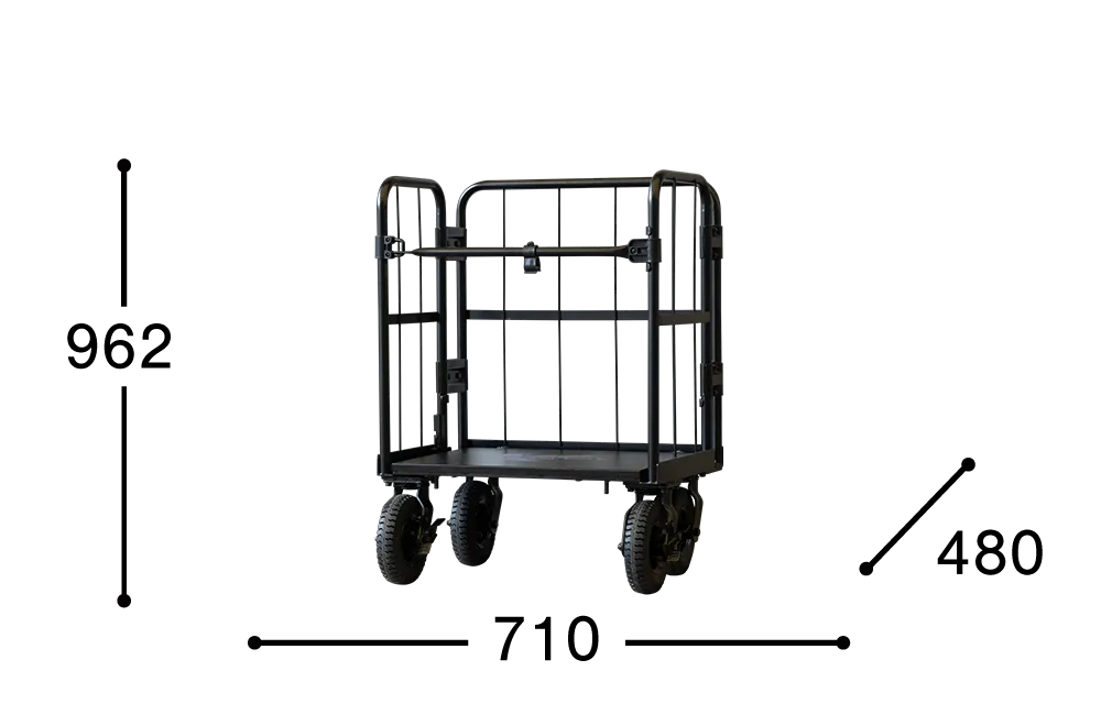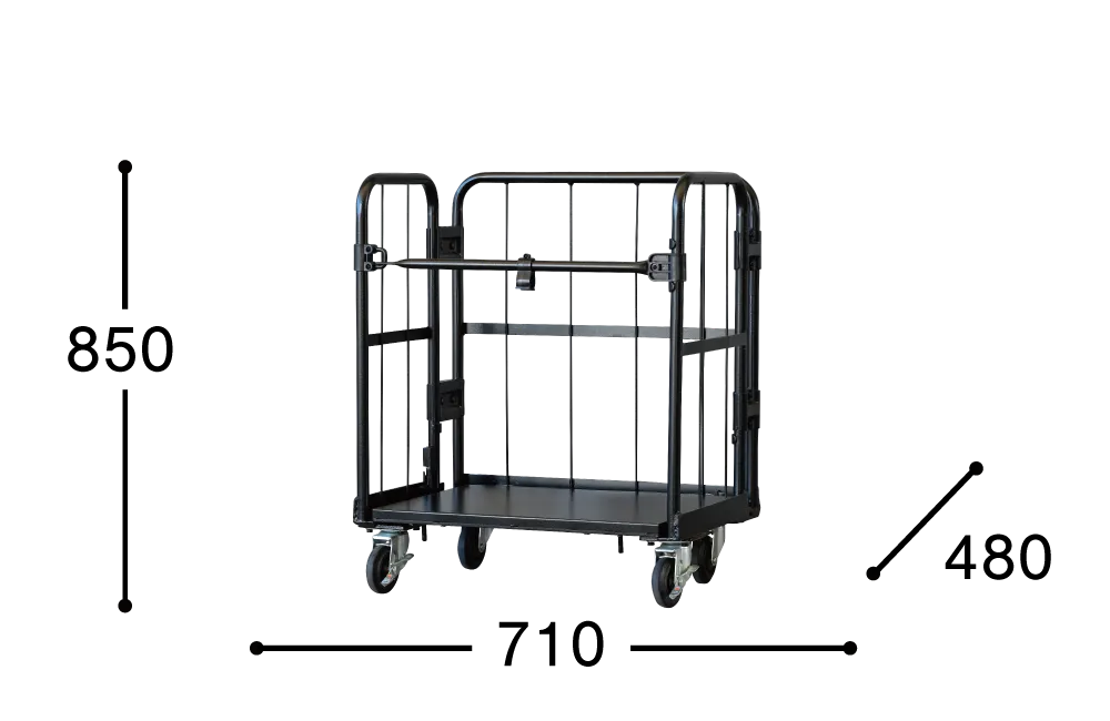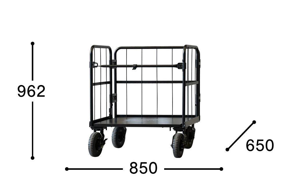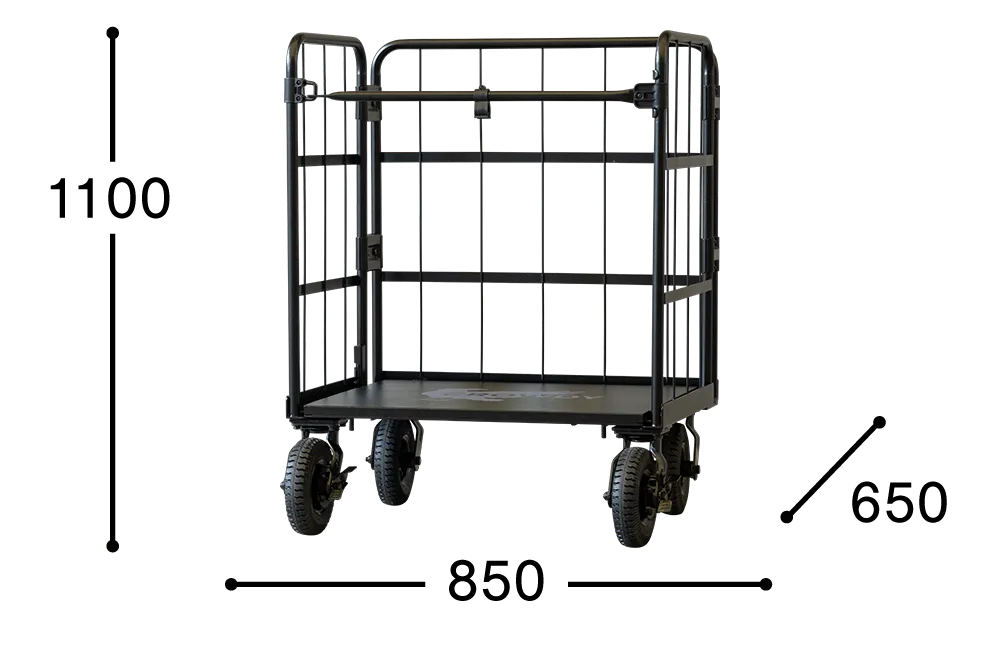 従来の手押し台車は背面のみで荷崩れしやすいという課題がありました。