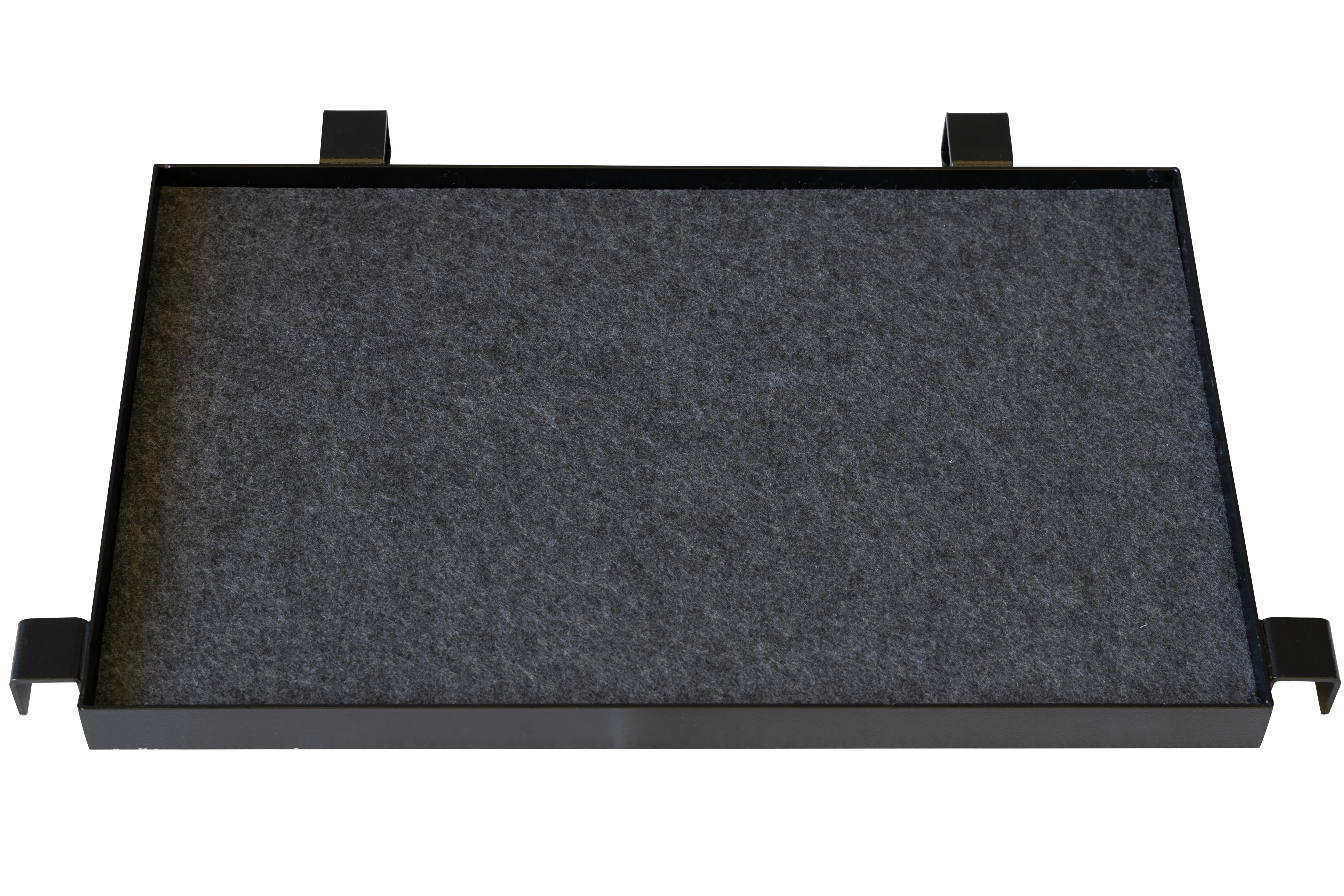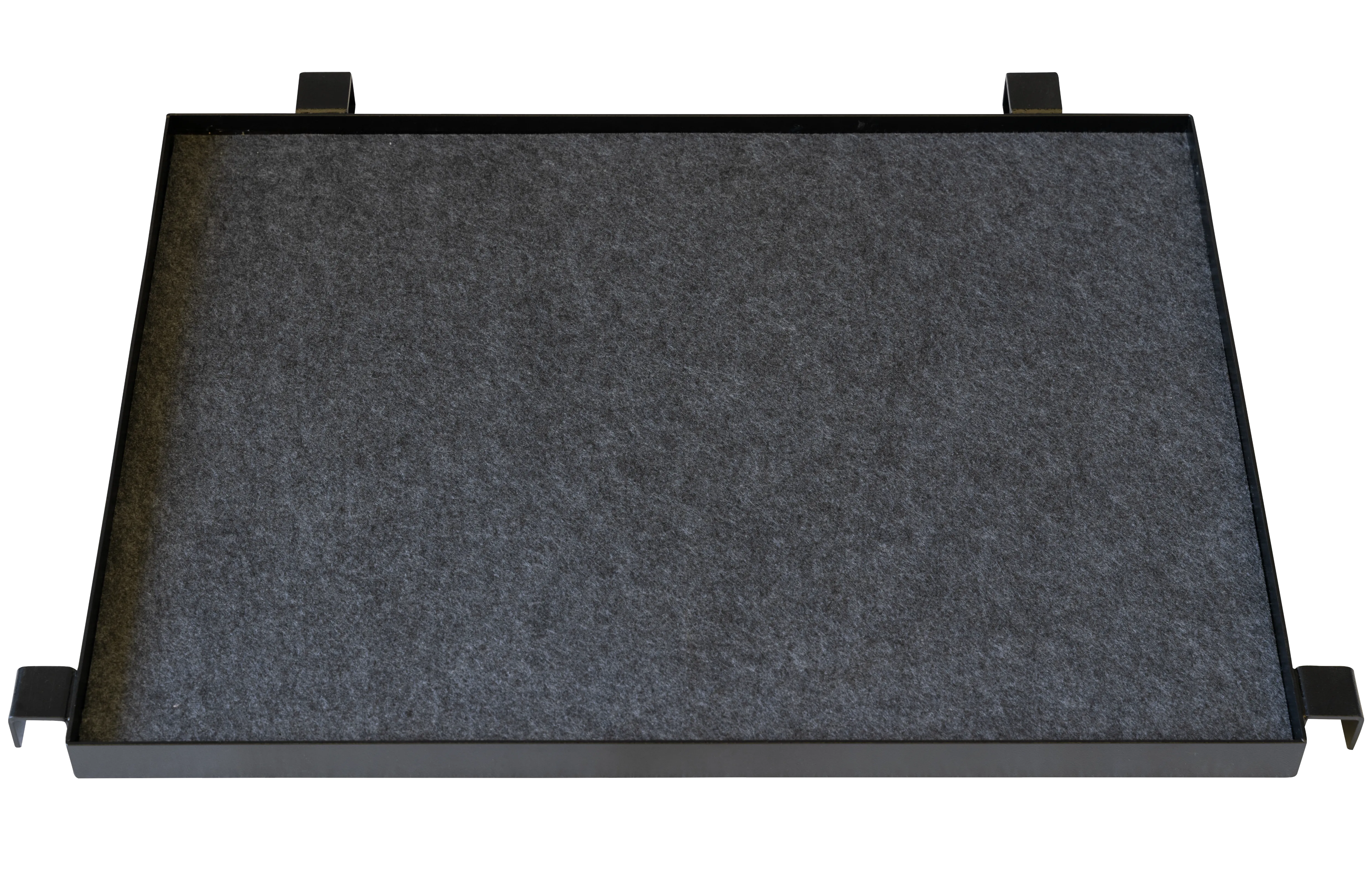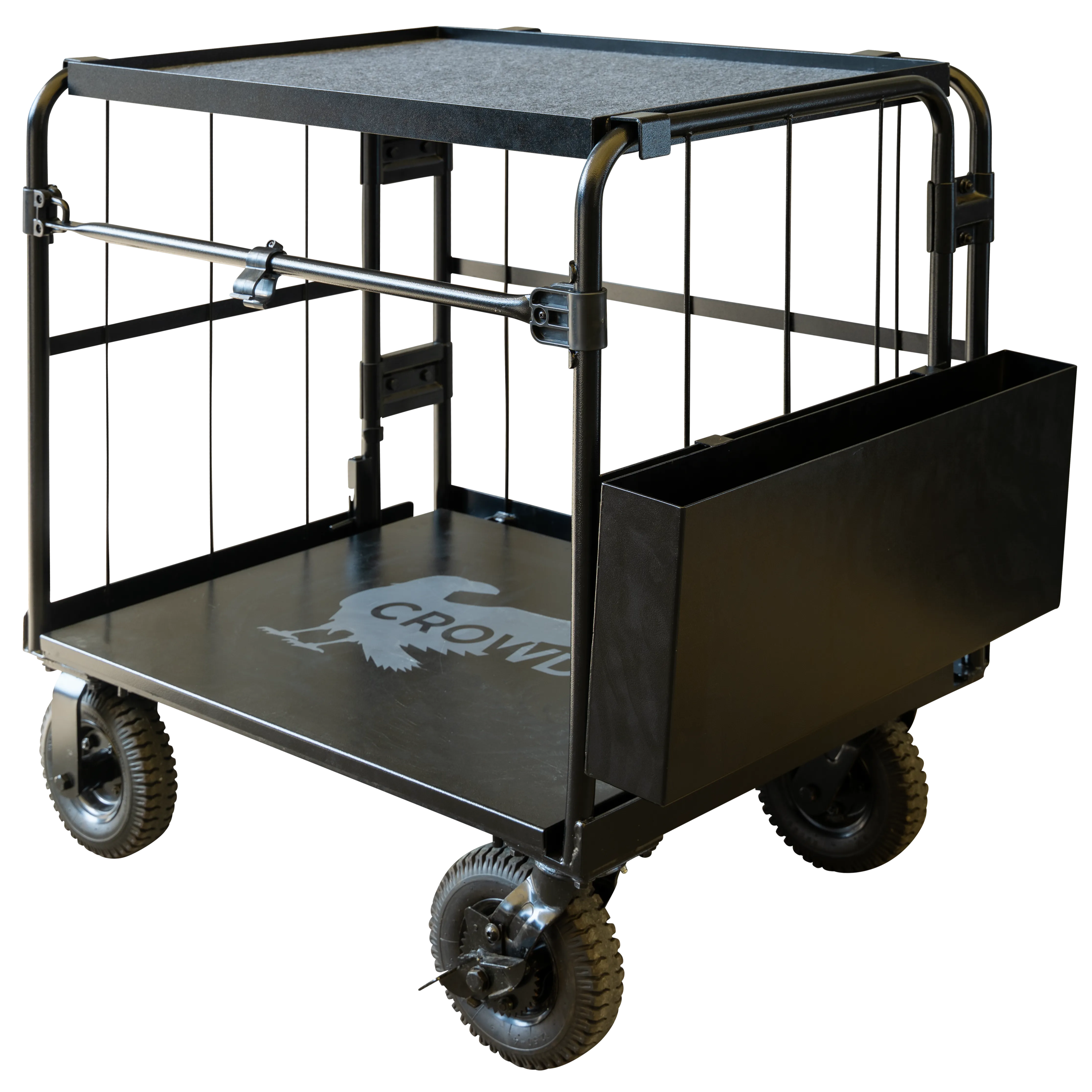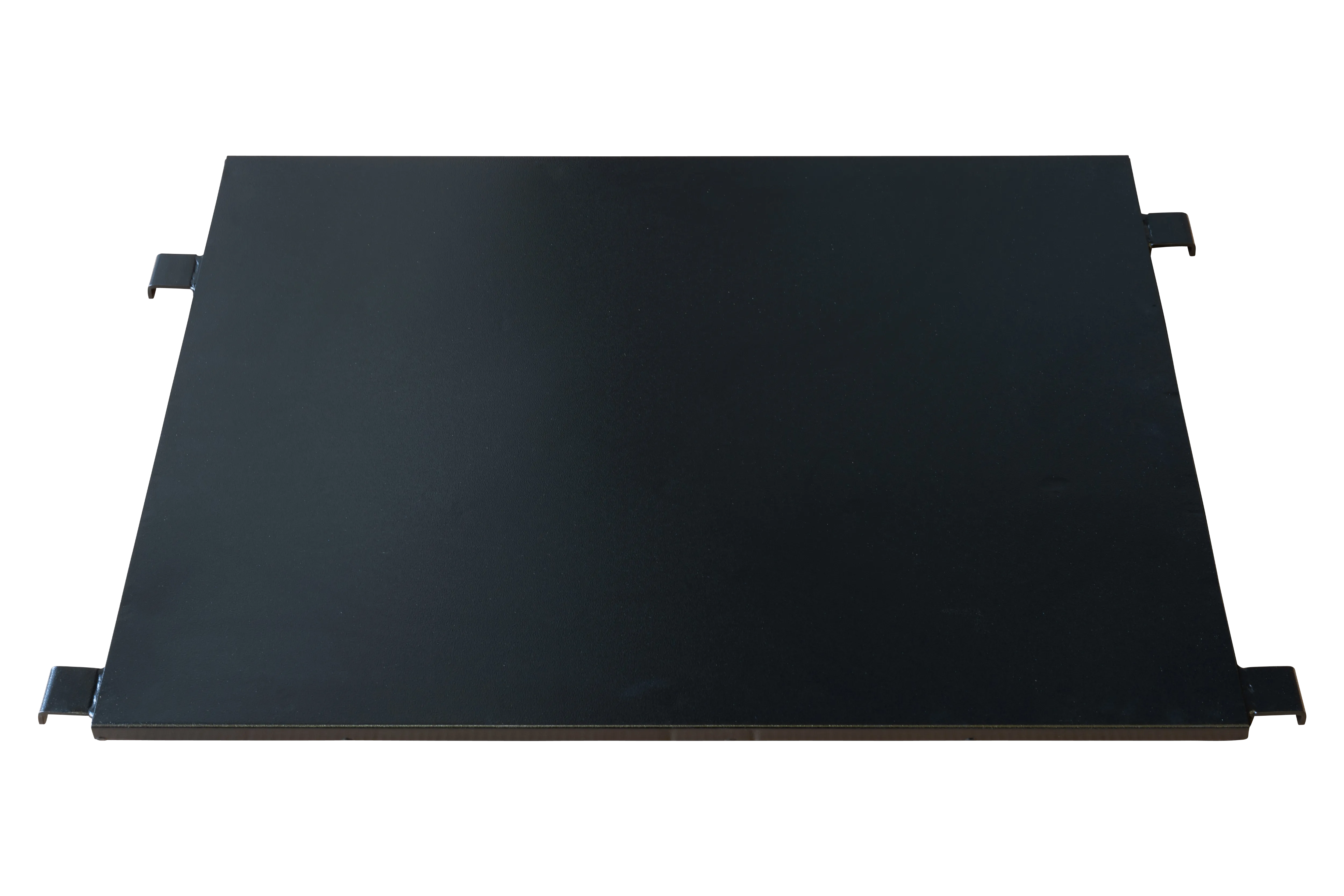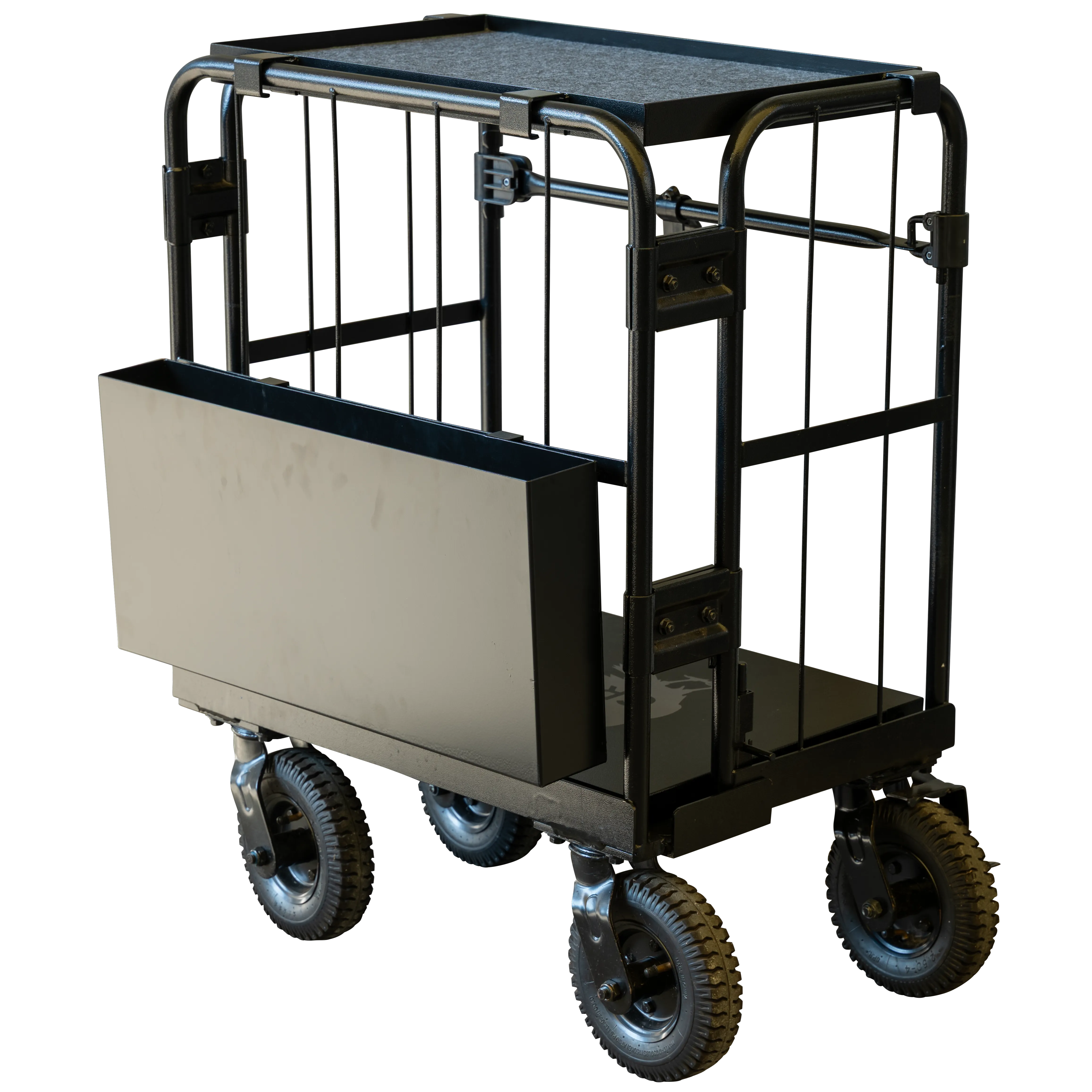 運搬・保管だけでなく、機材を載せたまま作業したいという声から棚板オプションを開発。
