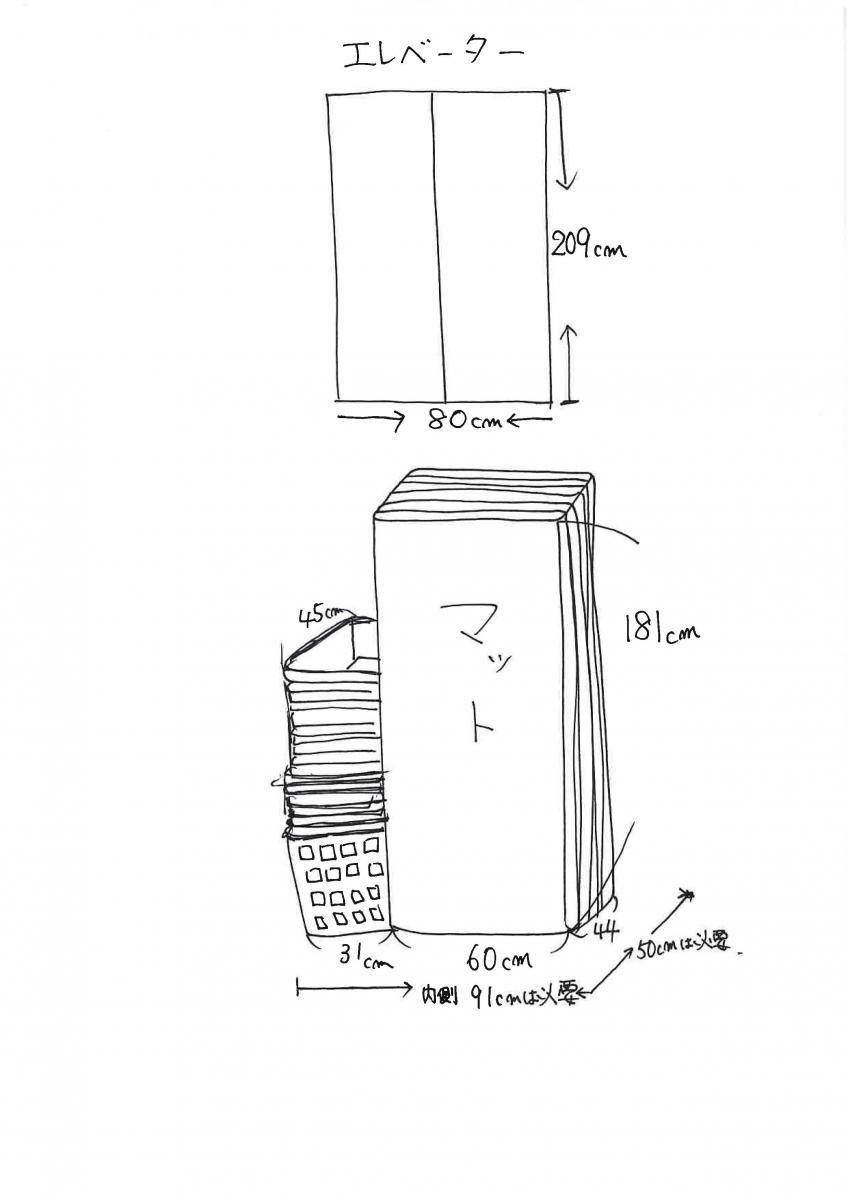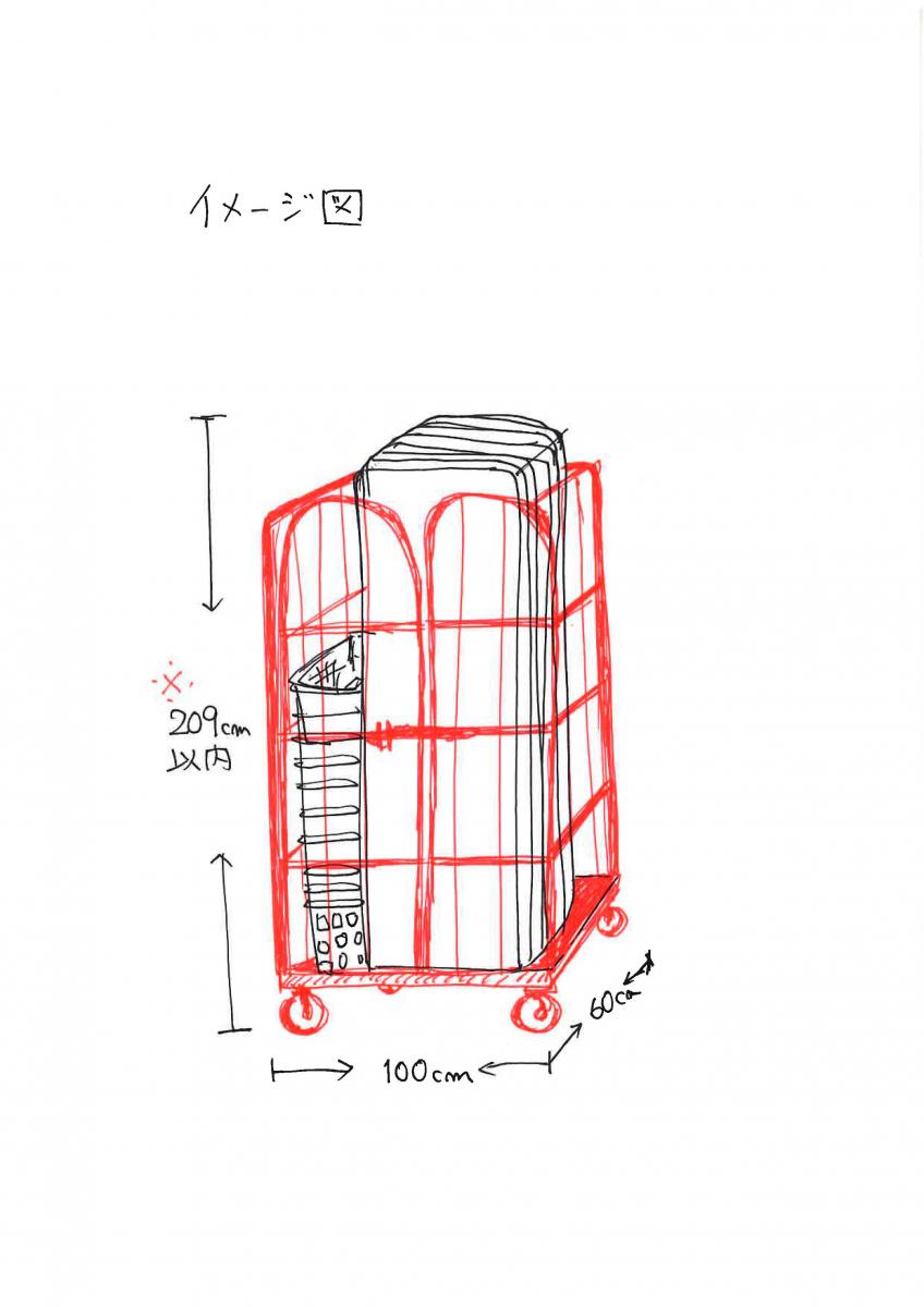 マットや備品を何往復もして運んでおり、観音扉付きのかご台車があれば荷崩れ防止対策をしながら一度に運べるが、既製品だとエレベーターに乗らないためオーダー製作でお問合せをいただきました。