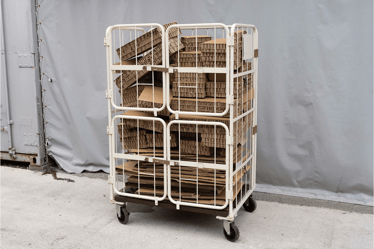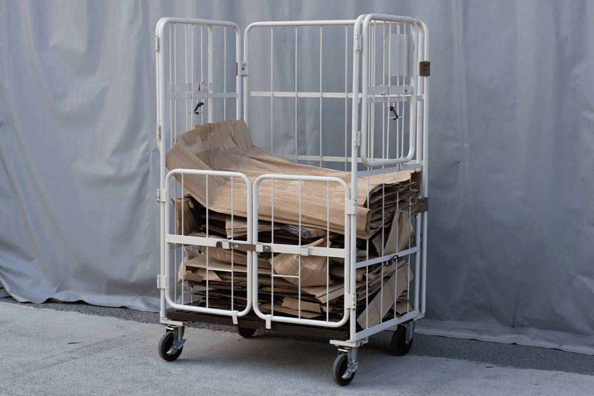 大量の段ボールゴミをまとめて保管でき、そのまま移動可能なカゴ台車とは!?