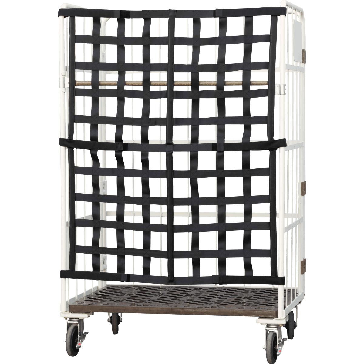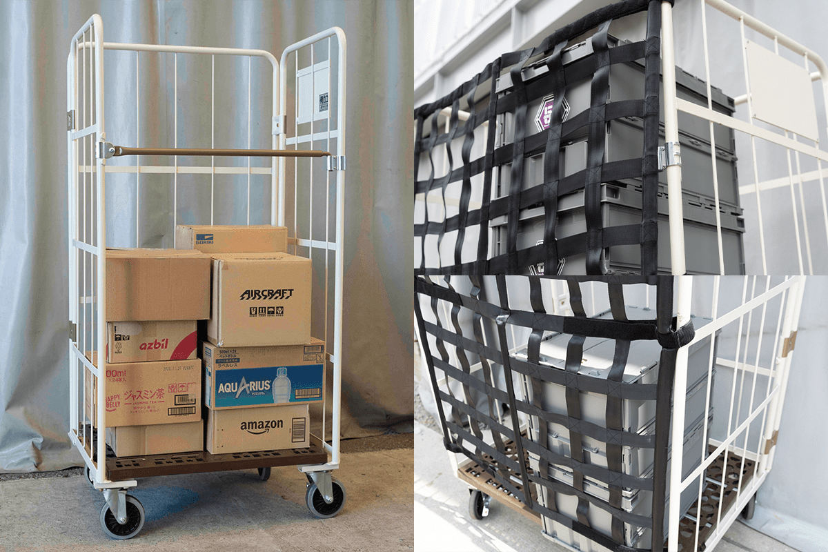 荷崩れを防止!既存のカゴ台車にも取り付け可能で、より安全対策を強化するオプション品!