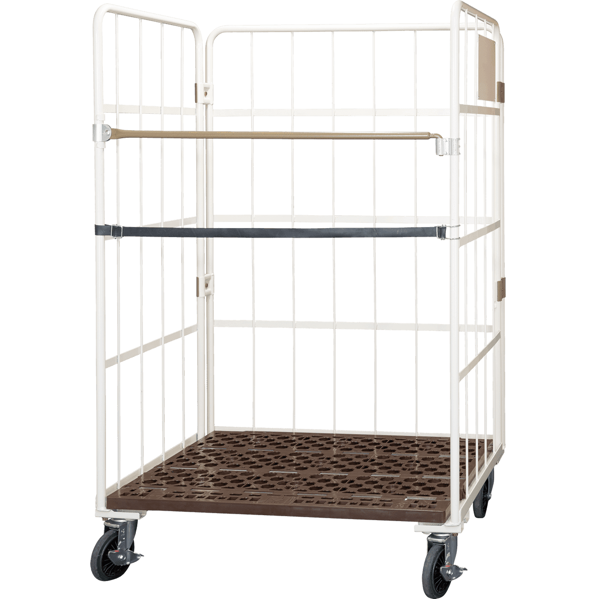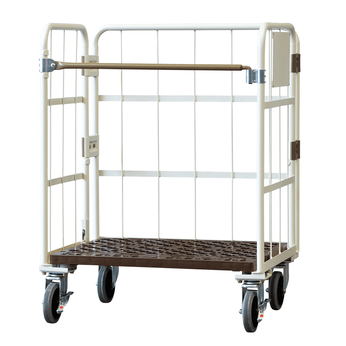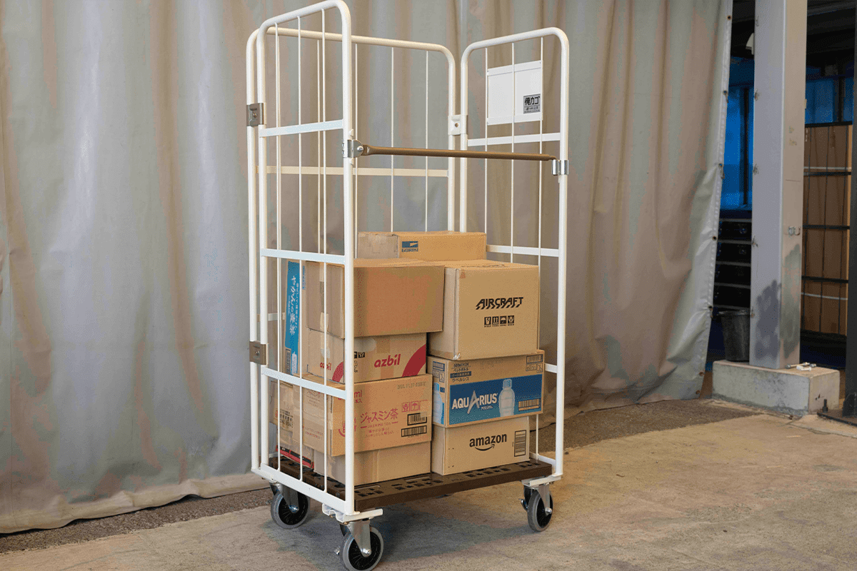 - 三面を囲まれているカゴ台車で安全に荷物を保管!