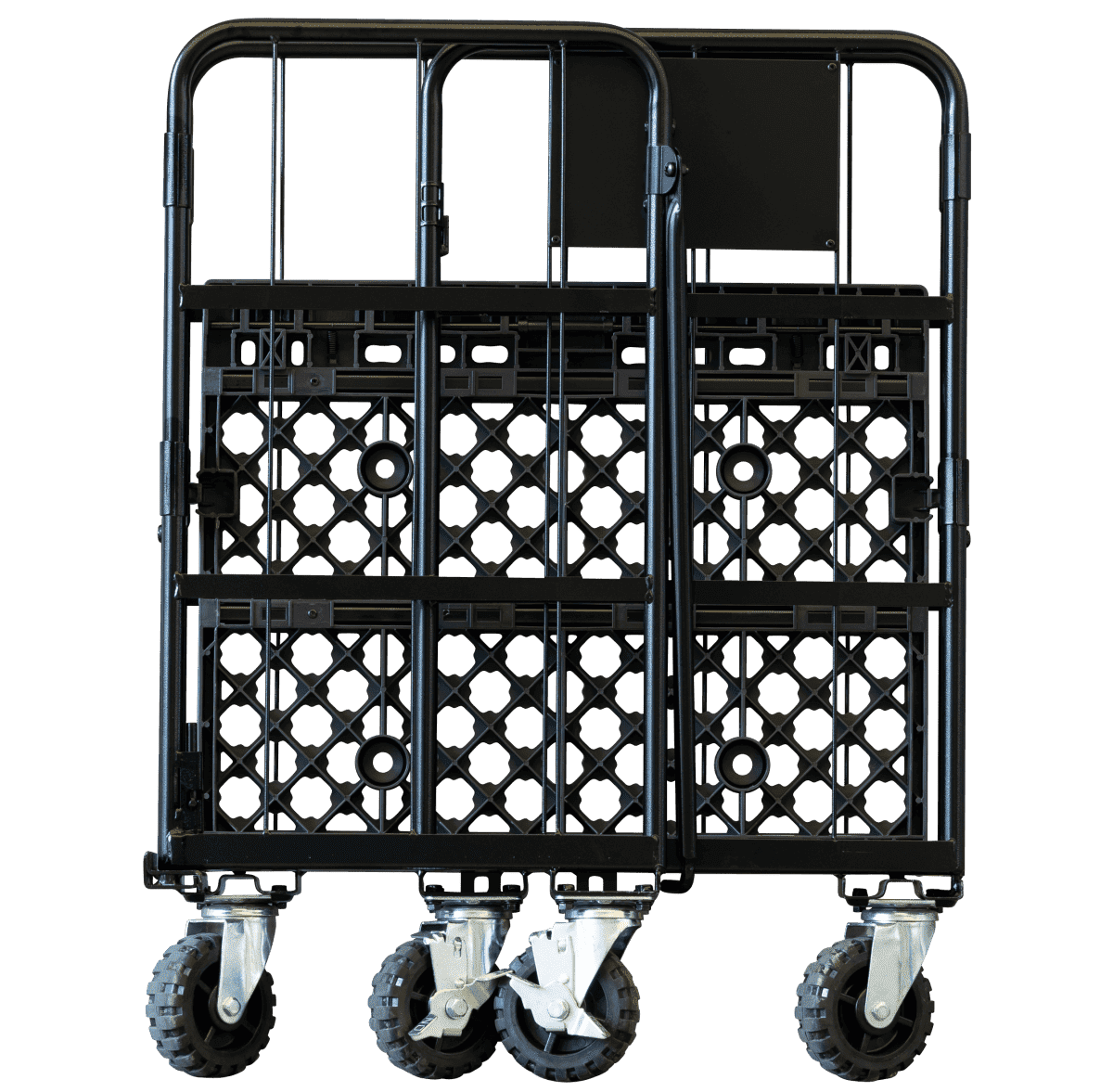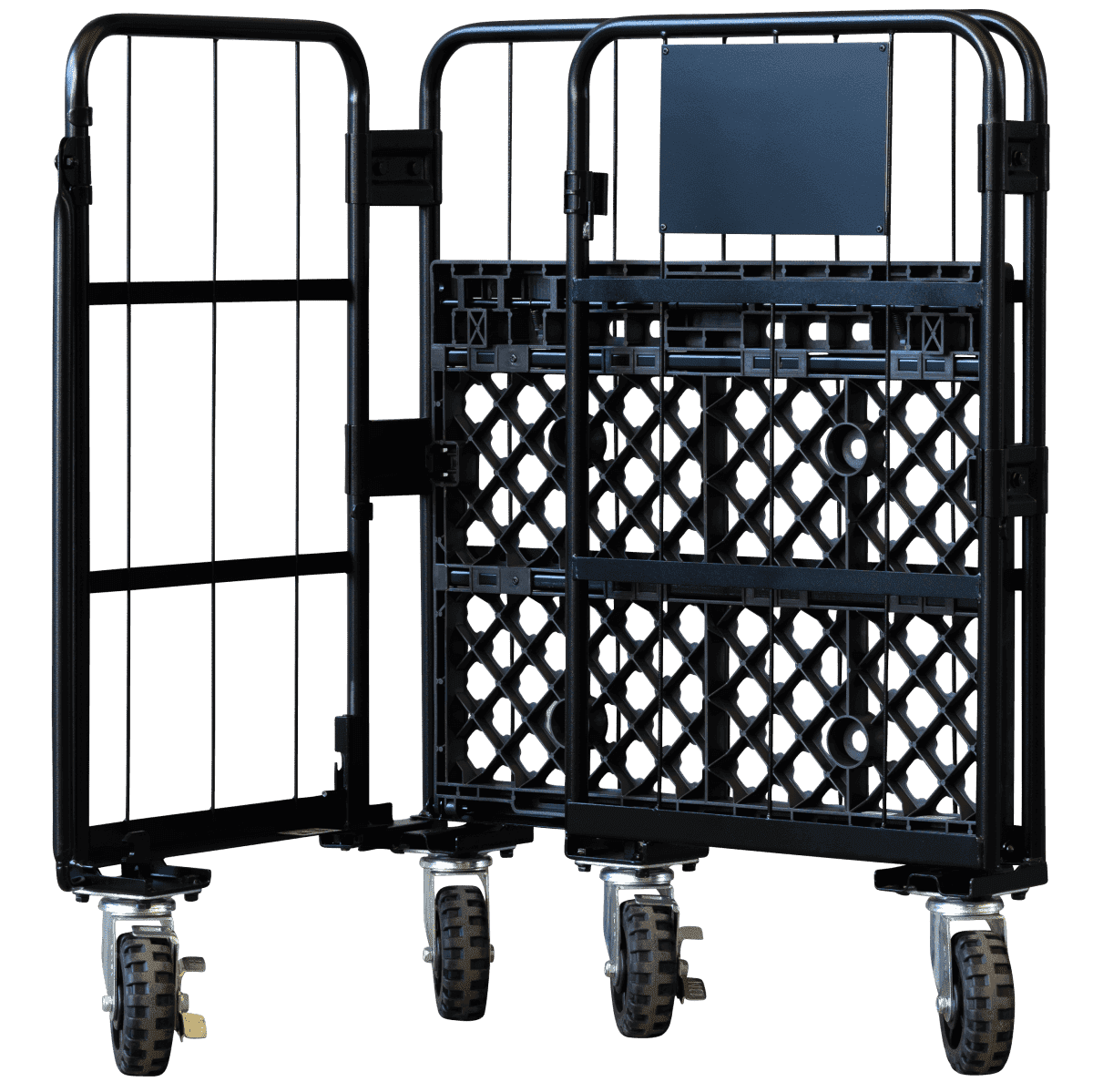 【新品】天使のカゴ台車 ブラック W850×D650×H1100 タフキャスター仕様 両面折りたたみ式【軽量・小型カゴ台車】
