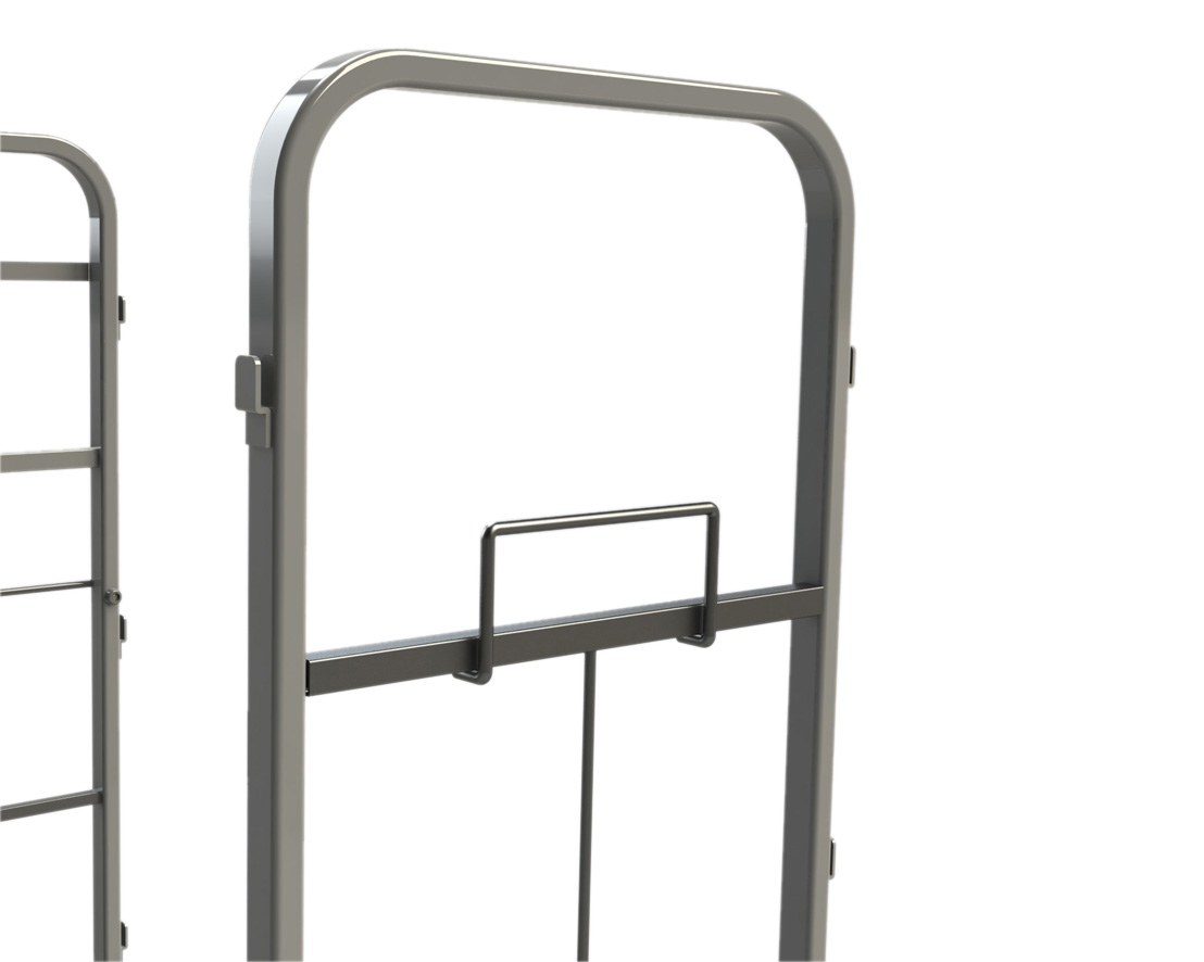 - 別売りの中間棚は側面ガードとしても利用でき、使用しないときはハンドルに掛けておくことができます。