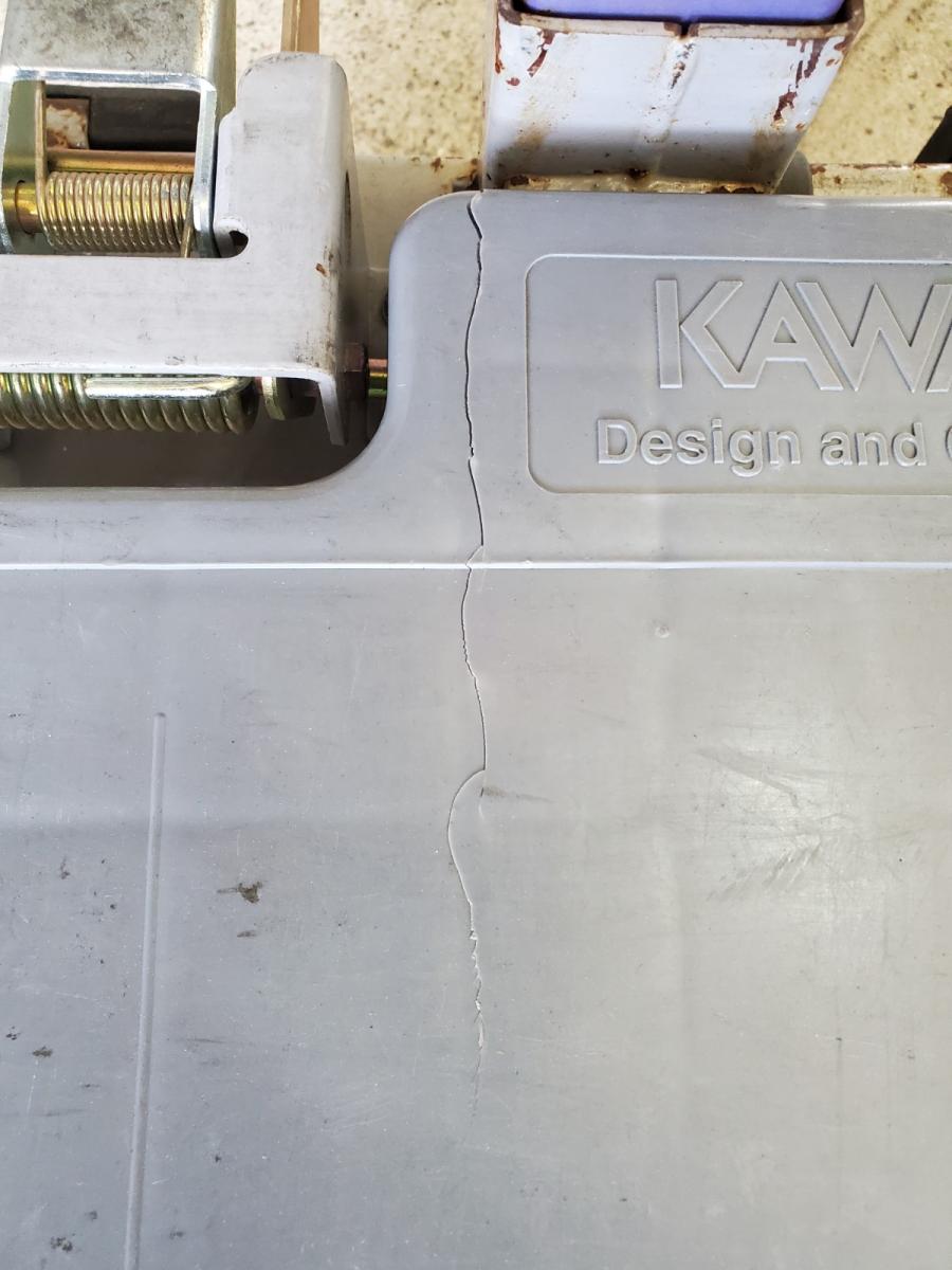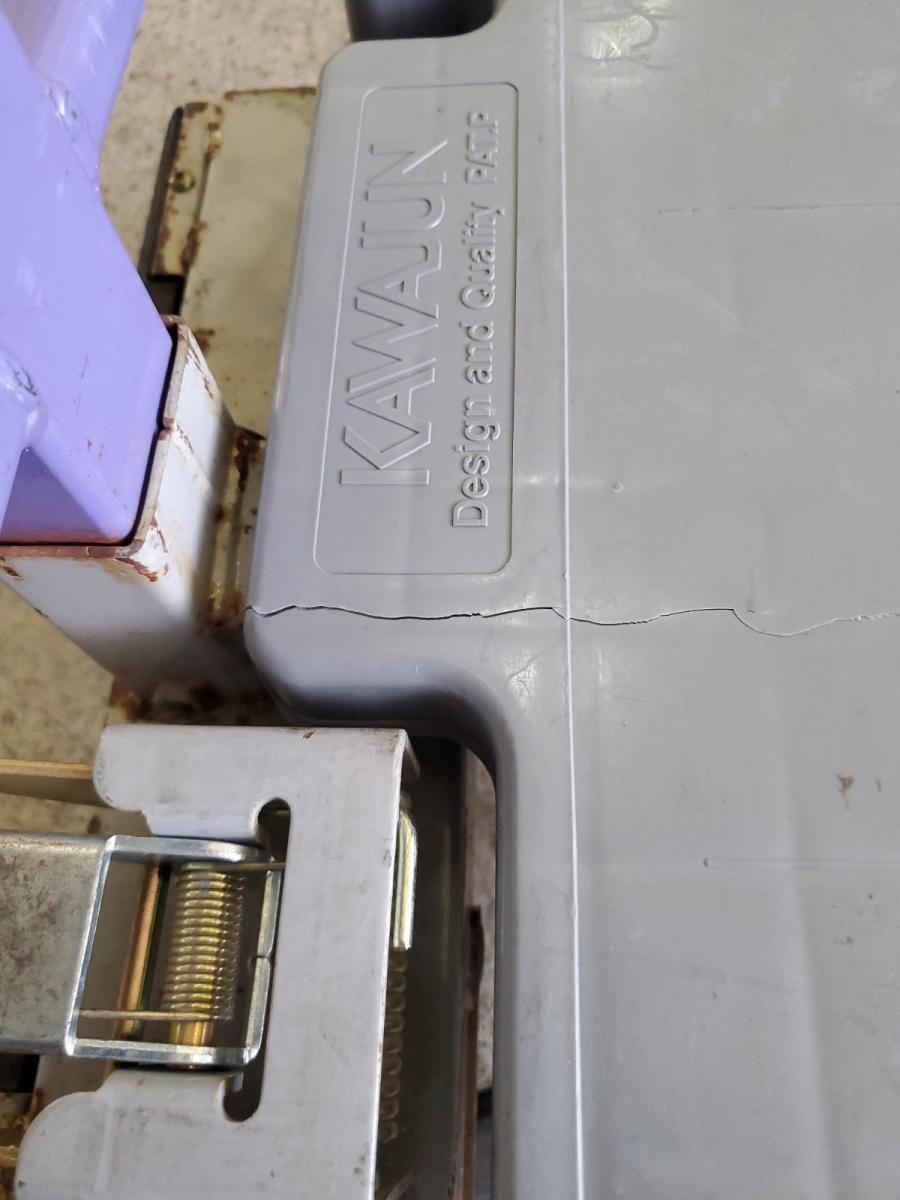 「6輪台車 パープル W1282×D425×H1585 カワジュン製 ネスティングタイプ」の中古品ですが、床板にひび割れが生じている為、引取限定!1台限定!!で販売致します。