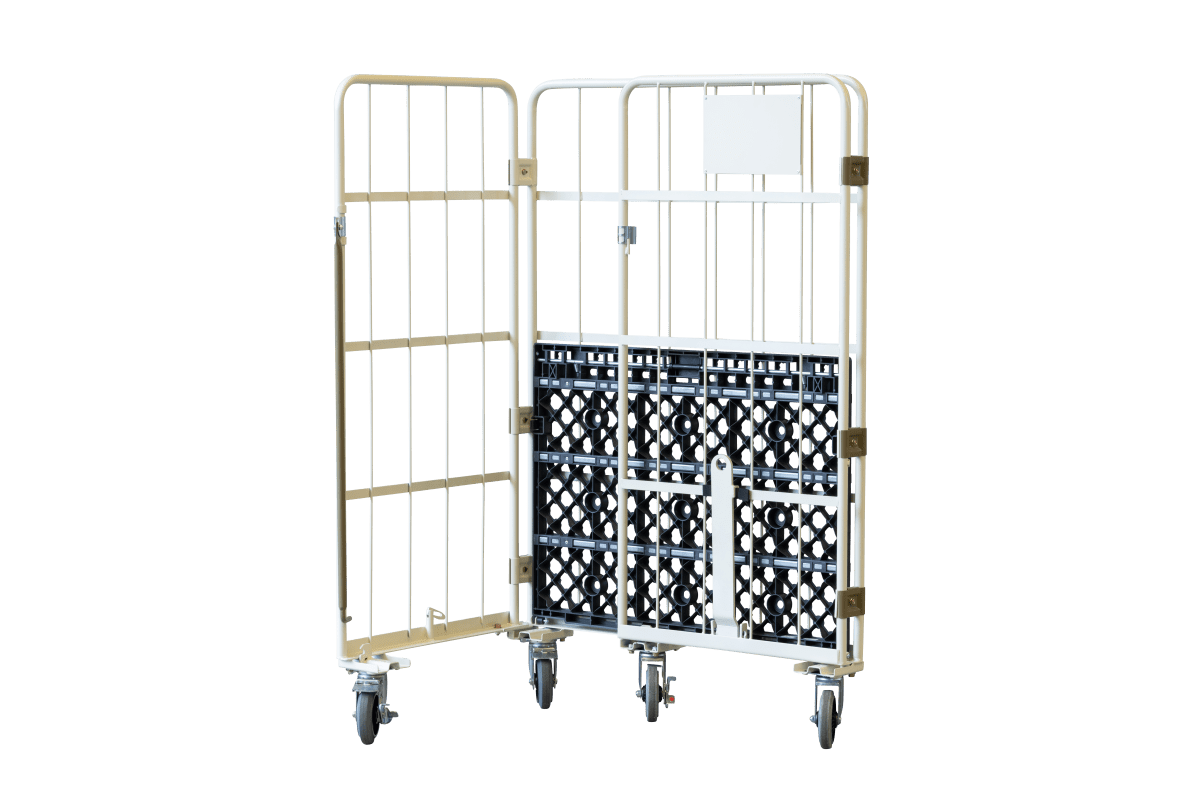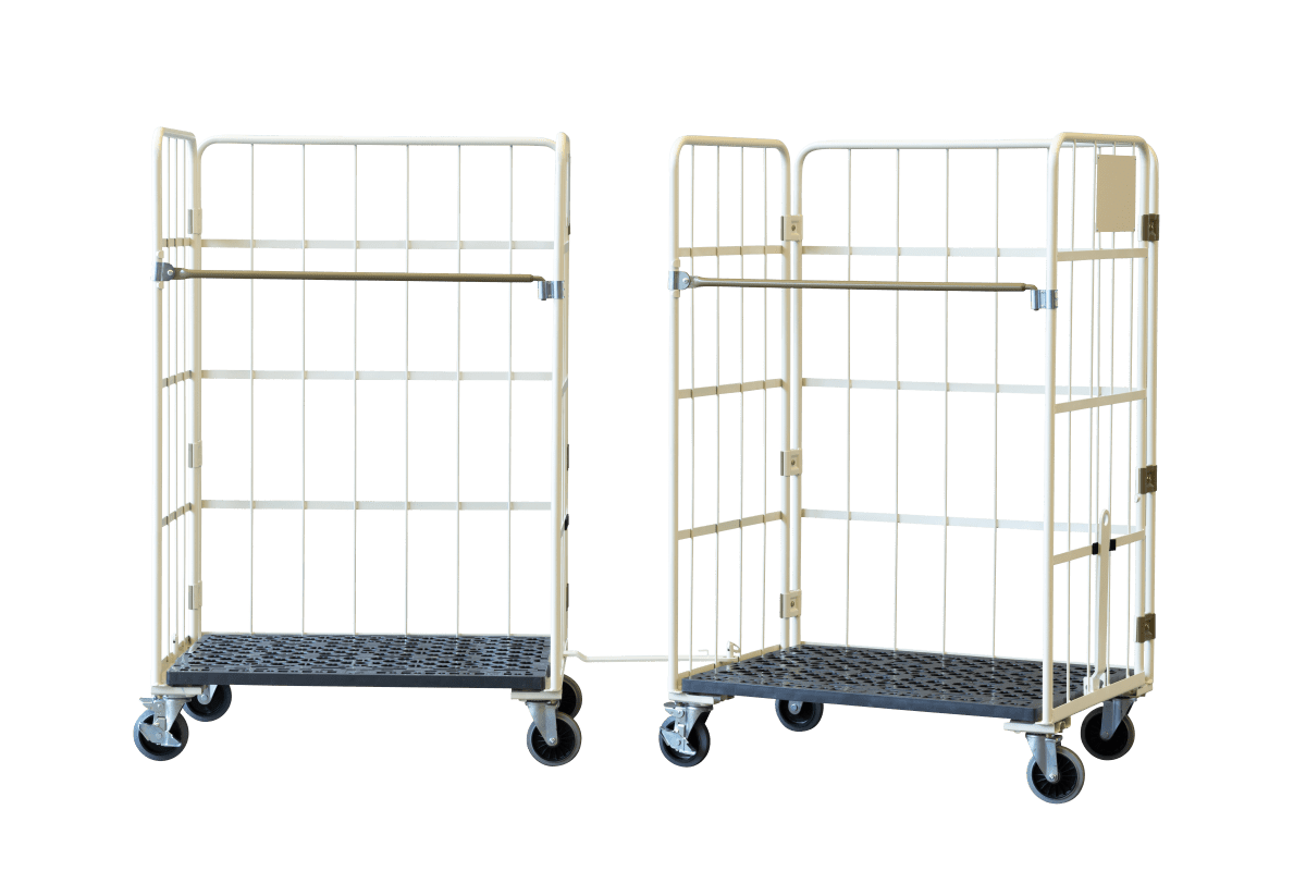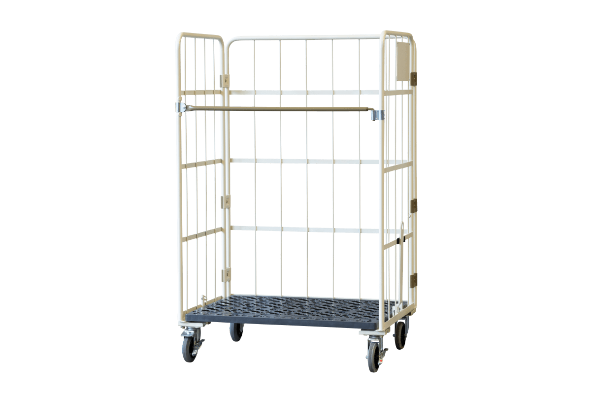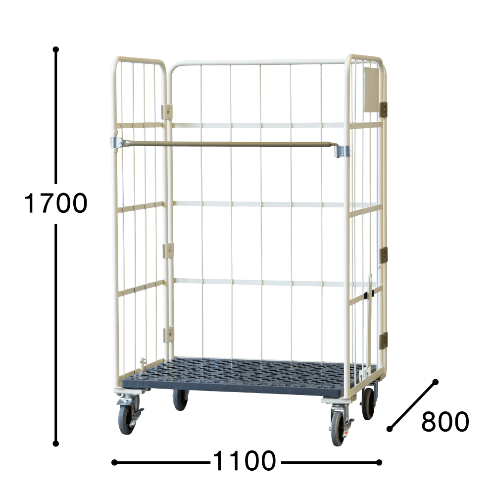 【販売終了】【受注生産品】俺のカゴ台車 アイボリー W1100×D800×H1700 連結モデル(連結カゴ台車)【1ロット30台~】