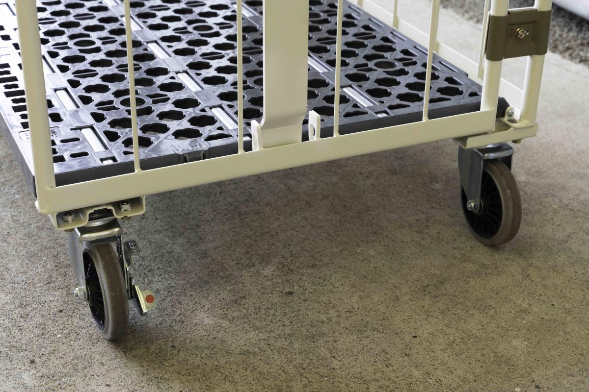 「俺のカゴ台車 連結モデル(連結カゴ台車)」は、2輪自在・2輪自在固定変換仕様キャスターの為、あらゆるシーンに活用できます。