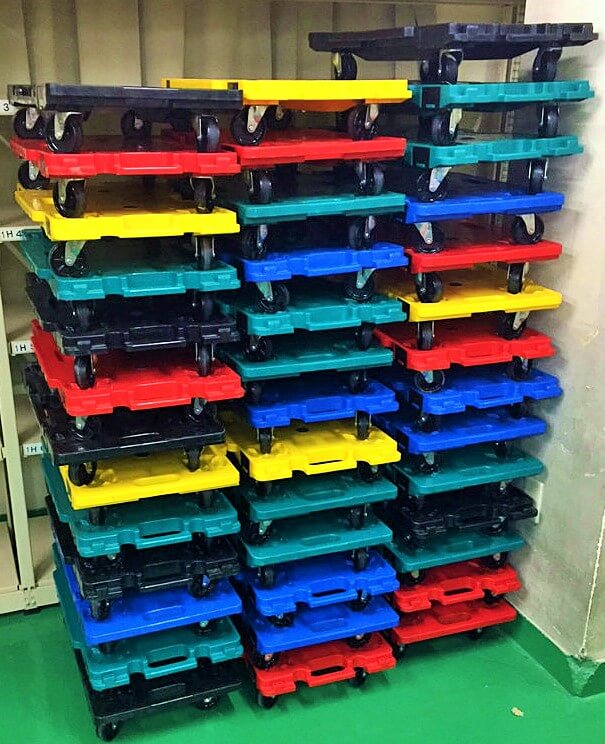 お荷物に合わせて縦・横に何台でも連結出来る平台車です。