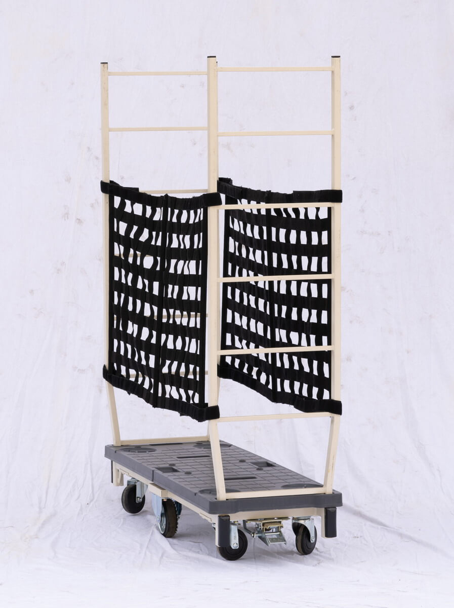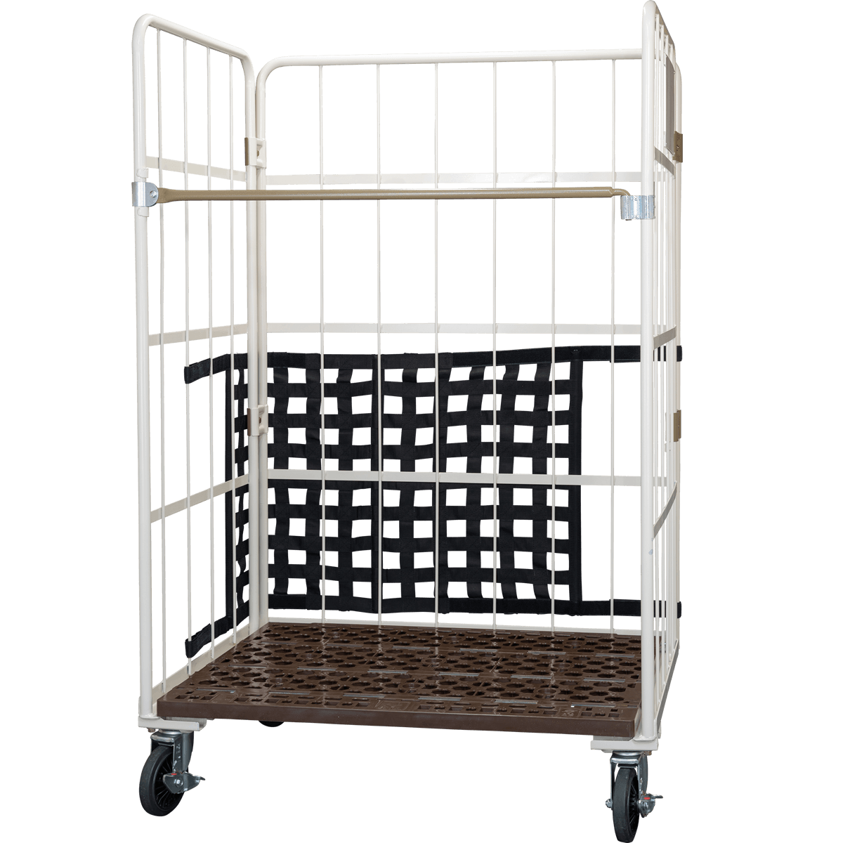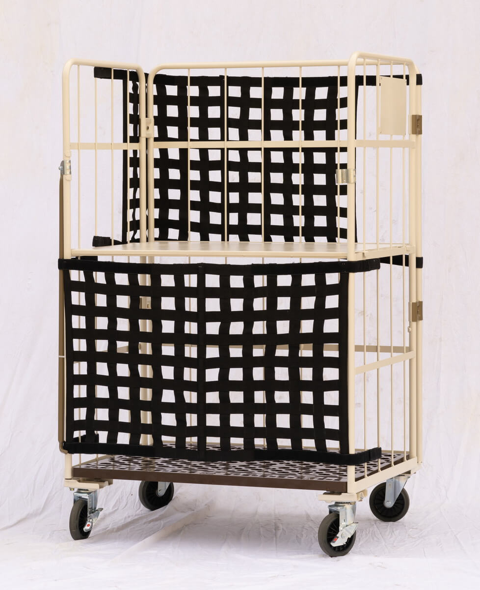 すべてのサイズのカゴ台車を観音扉仕様に変えることができます。また、荷物が台車から飛び出ていても、カバーが形を変えて荷物をガードします。