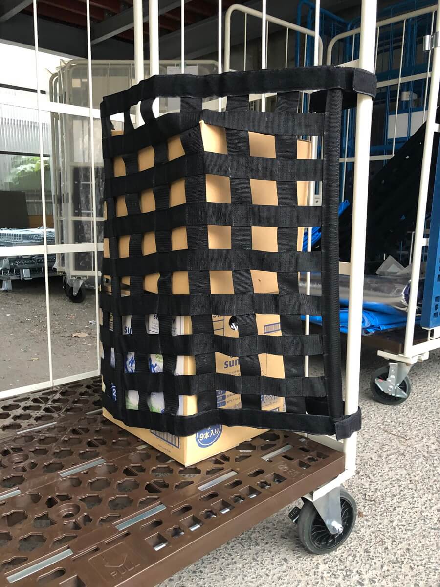 網目のサイズが50mm×50mmになったことでより小さい荷物にも対応!非常にマルチにお使い頂けるカゴ台車カバーでございます!