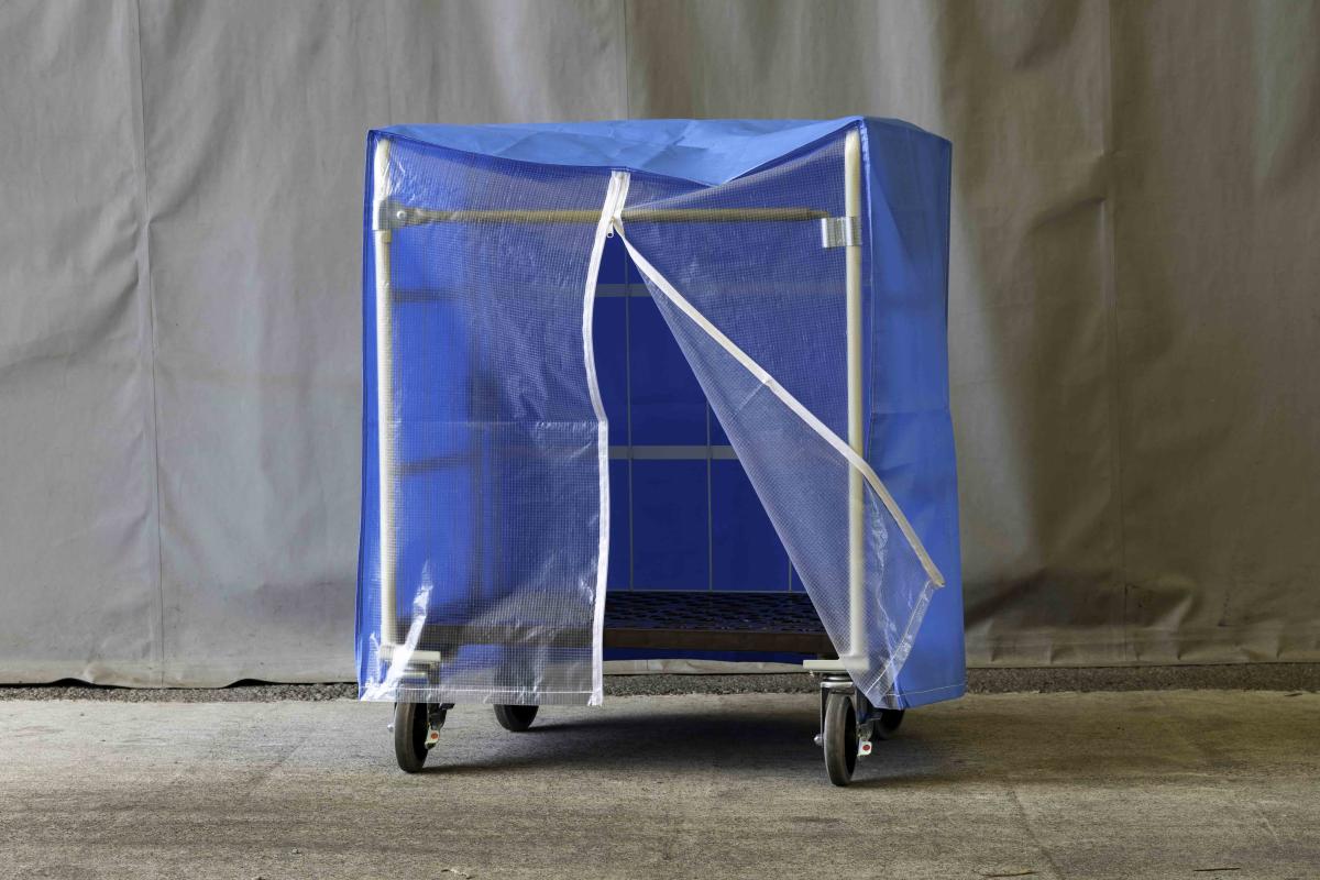 天使のカゴ台車用の防塵・防滴カバー 前面クリアタイプを数量限定販売!
