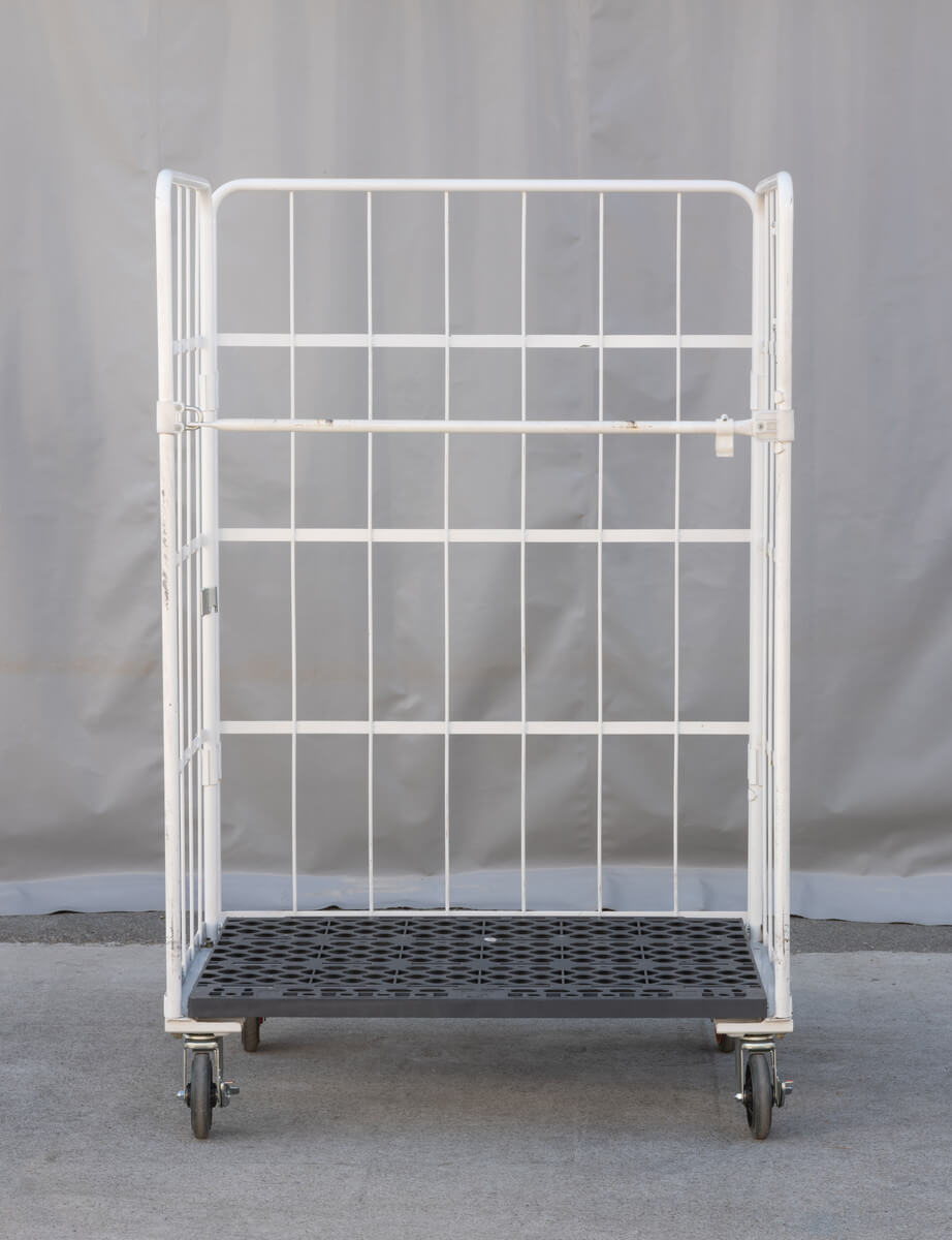 ホワイトカラーのカゴ台車(W1100×D800×H1700サイズ)の中古品を販売します!!