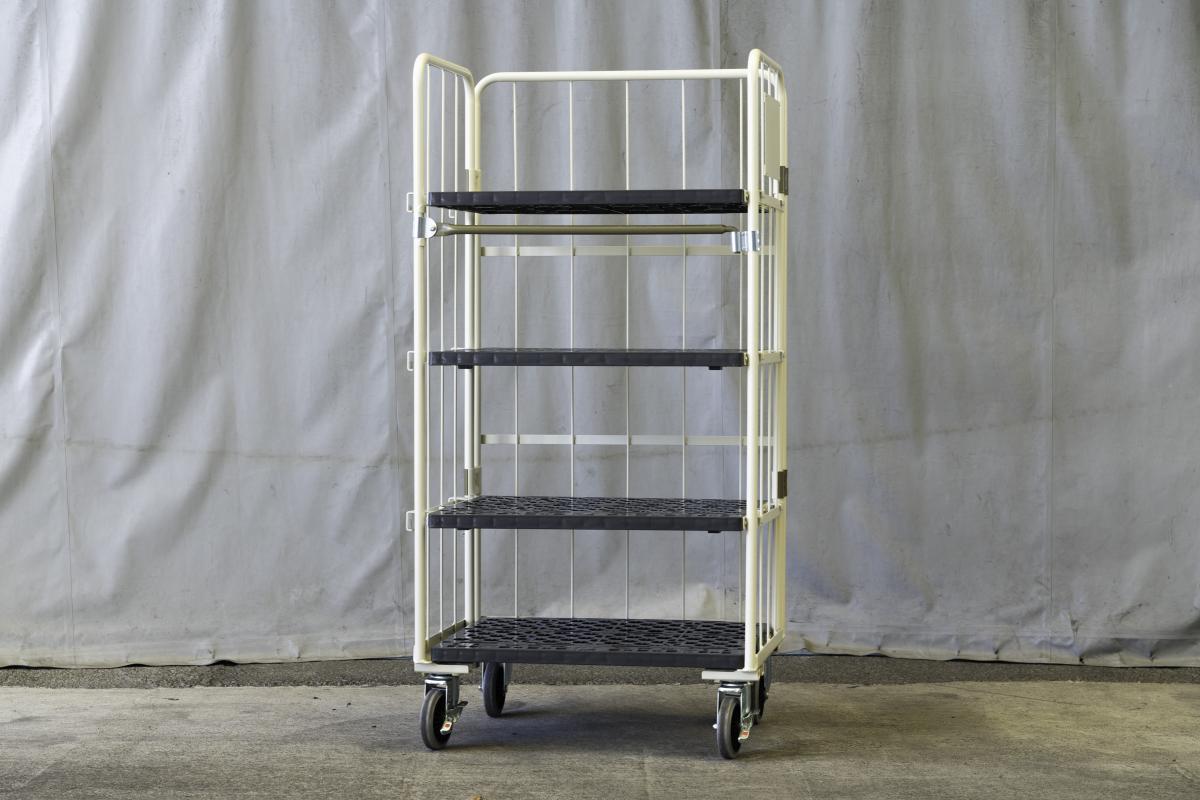 6輪台車をメインで使用していますが、商品保管の為にカゴ台車を探していました。割れ物の為、高い場所での保管は不安だったので背の低いカゴ台車を探していたところ当HPで見つけ問い合わせました。最終的に高さ1700mmのカゴ台車を購入し、中間棚を使用して上部には軽い物の保管スペースとして活用しています。