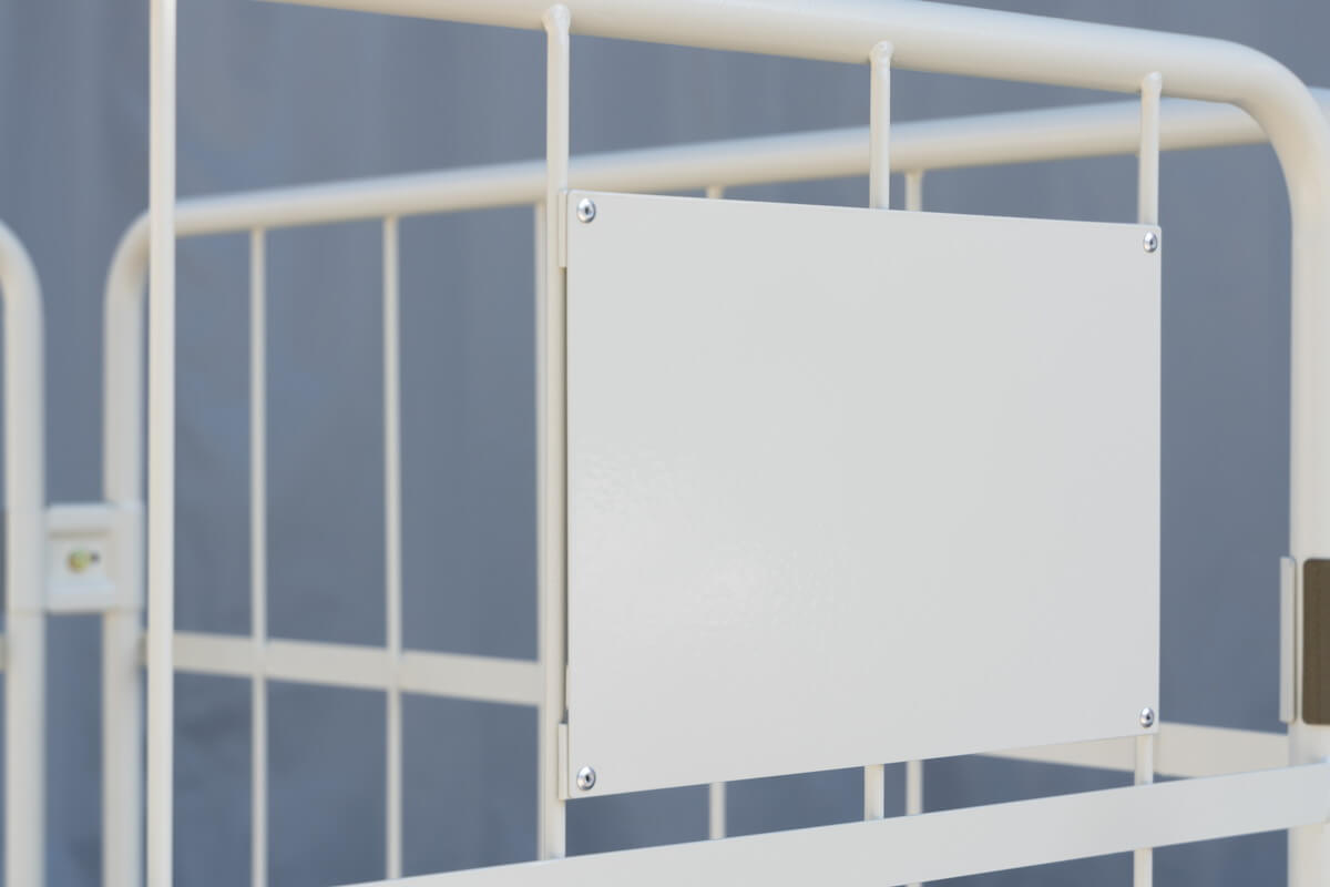 カゴ台車の看板などに貼れる社名シール印刷サービス「シール屋 五常」です。カゴ台車を管理しやすくなります。