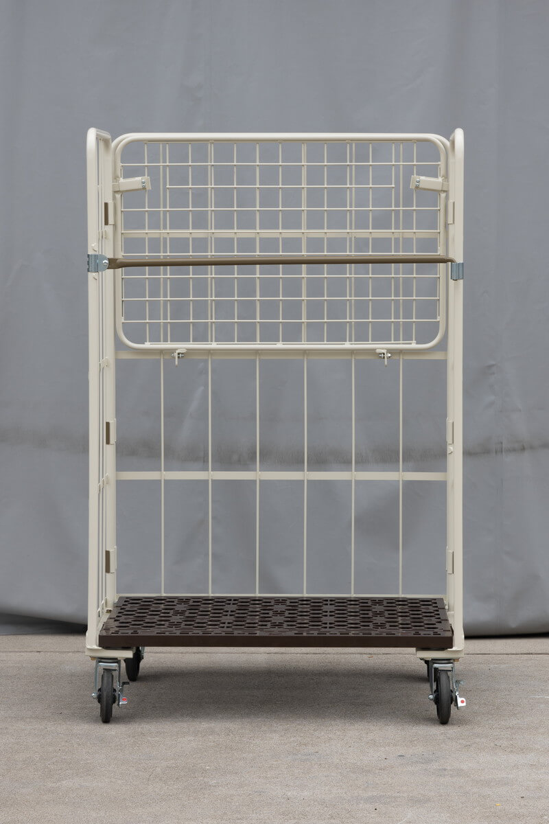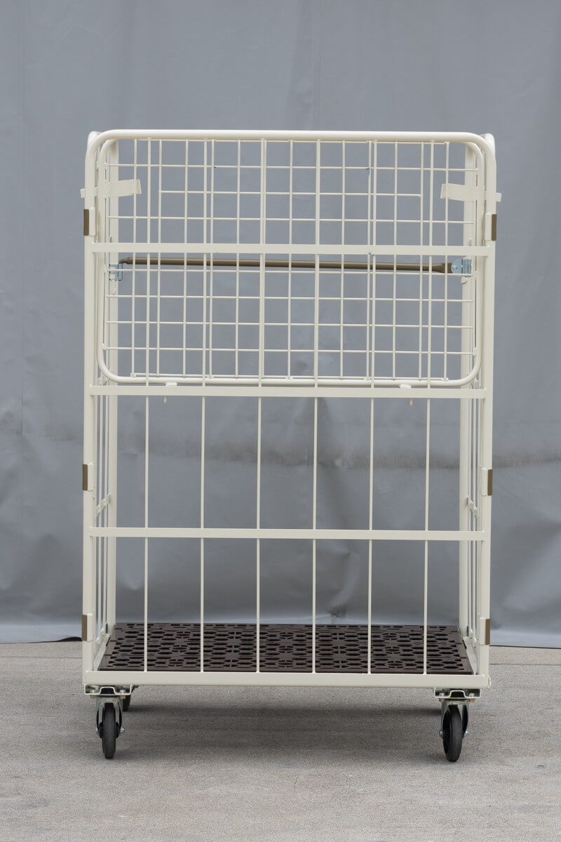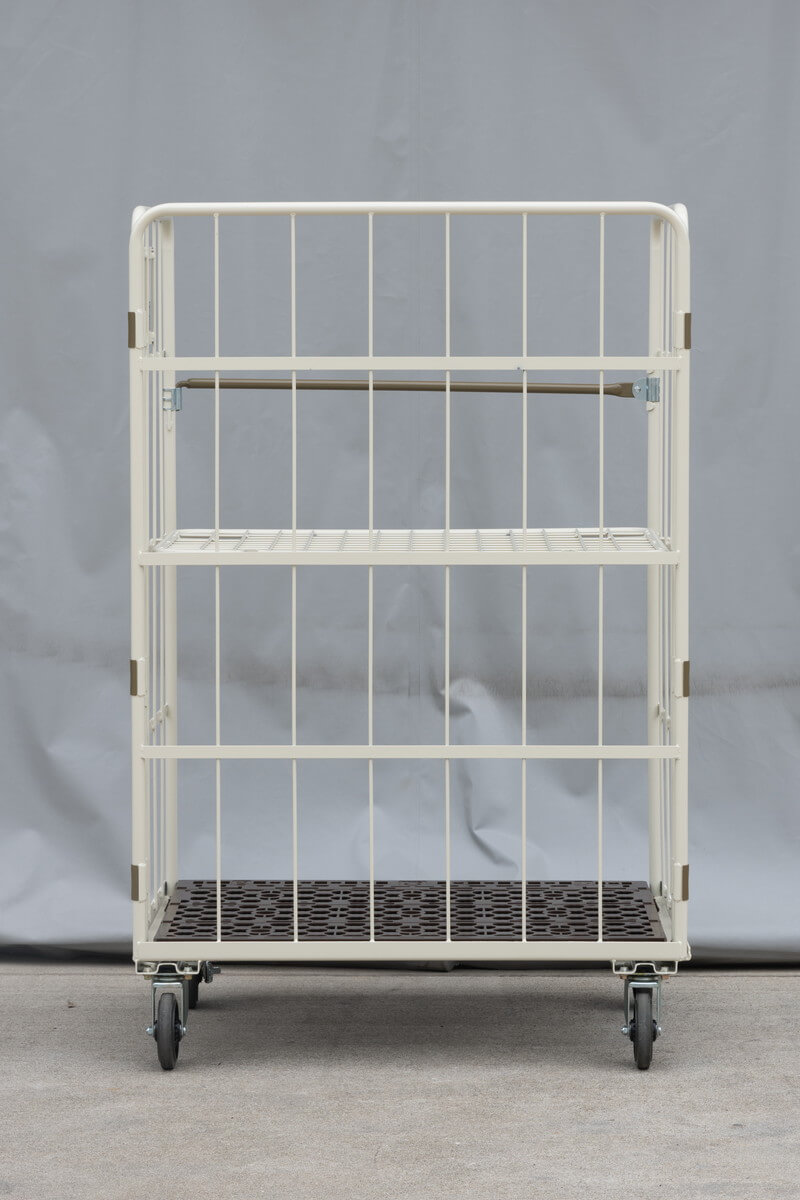 カゴ台車を使わない時はL字に畳んで保管したいので中間棚の取り外しがしやすく、女性が使用することが多いと伝えたところ、中間棚一体型カゴ台車をご提案いただき購入に至りました。