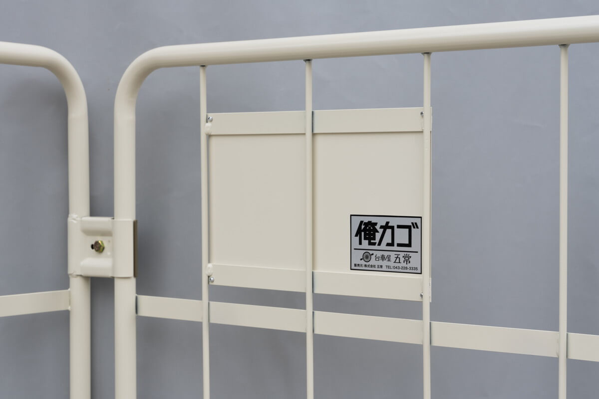 カゴ台車の看板などに貼れる社名シール印刷サービス「シール屋 五常」です。カゴ台車を管理しやすくなります。