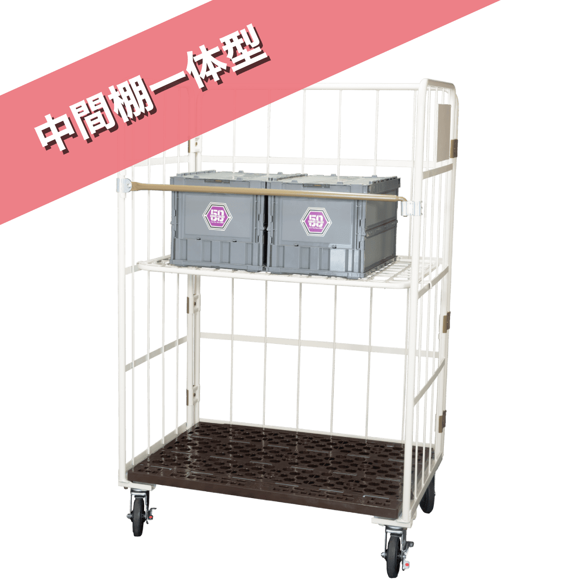 そんなお客様の不満や悩みを解消し、作業効率を上げる商品がこの「俺のカゴ台車 中間棚一体型」となります。