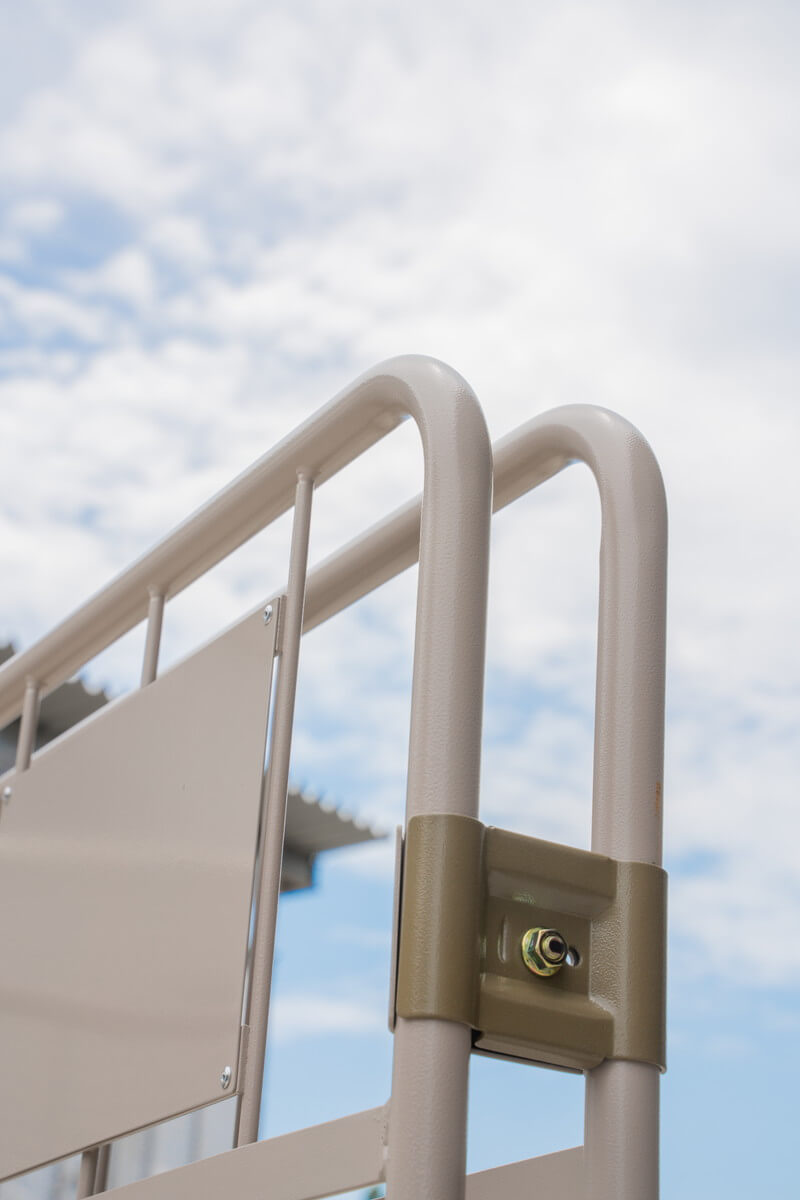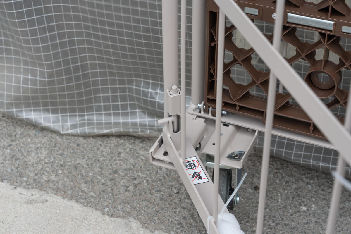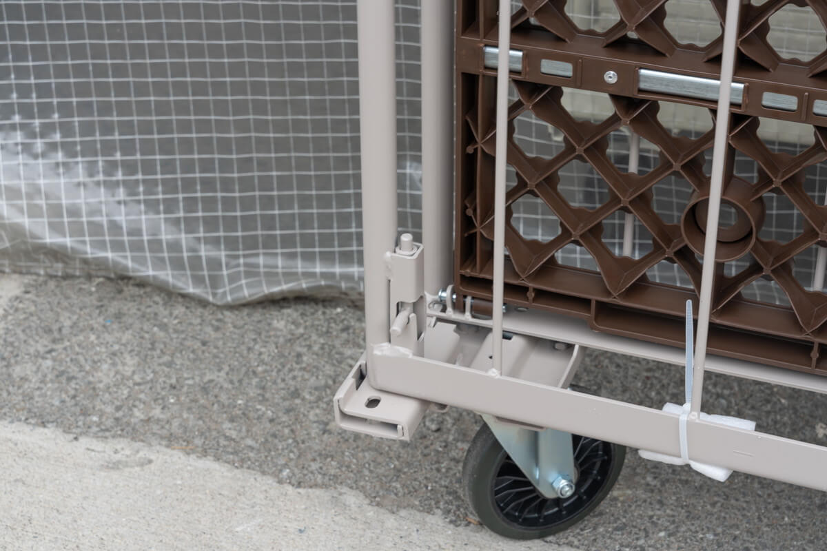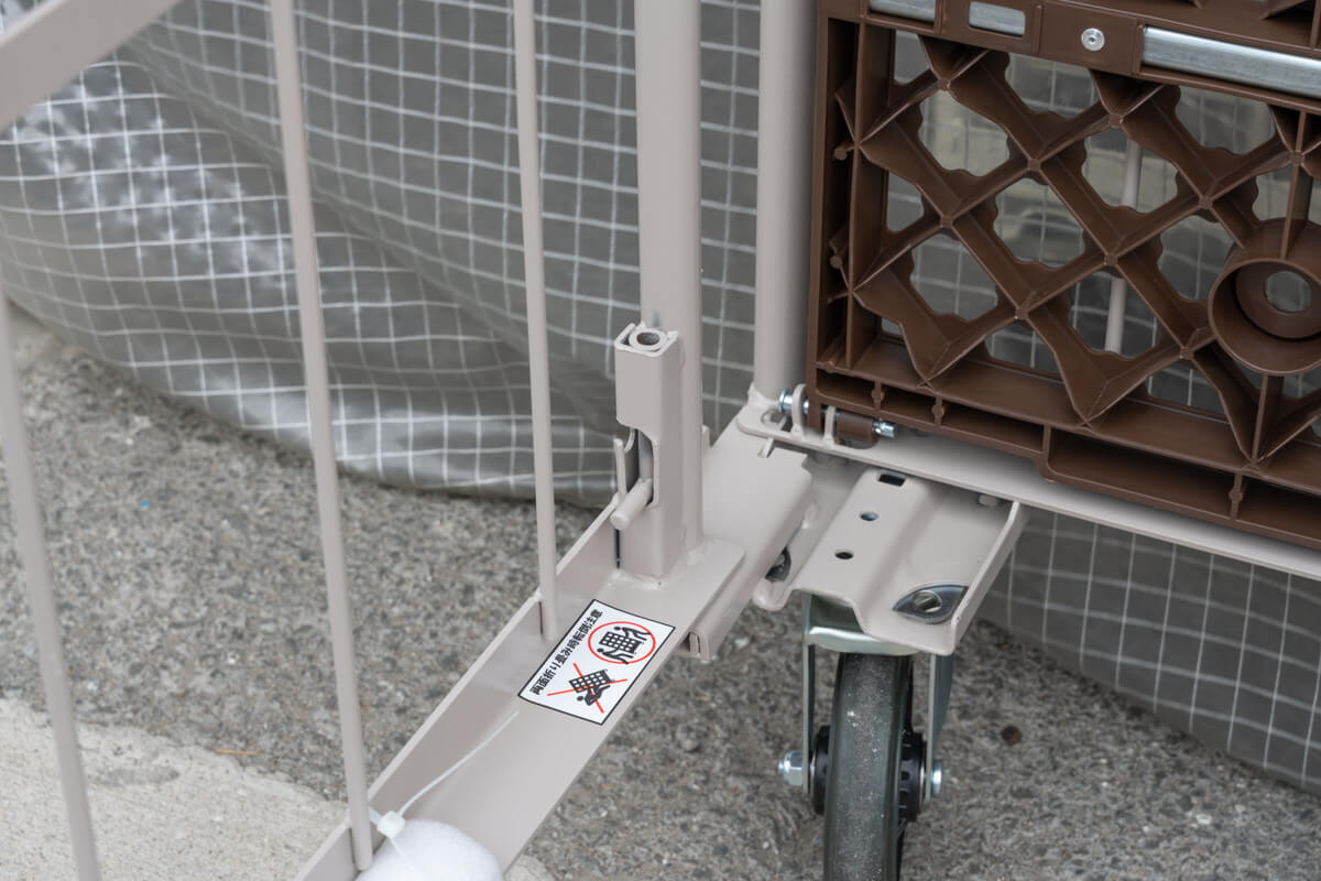 - 両面を折りたたんだ状態ではカゴ台車は自立しません。