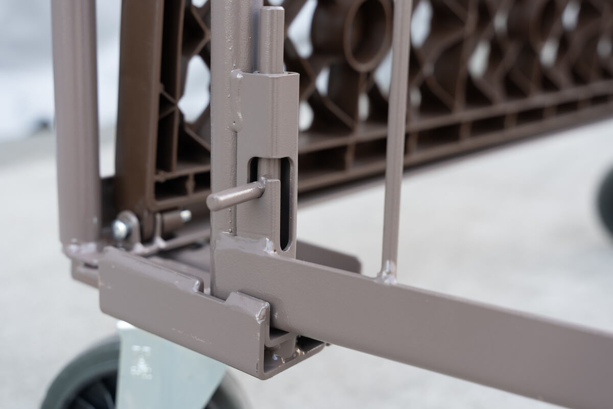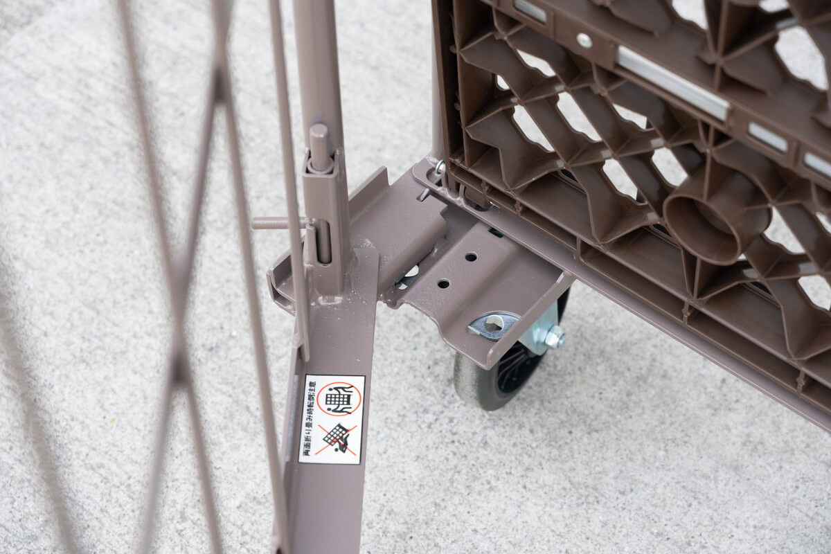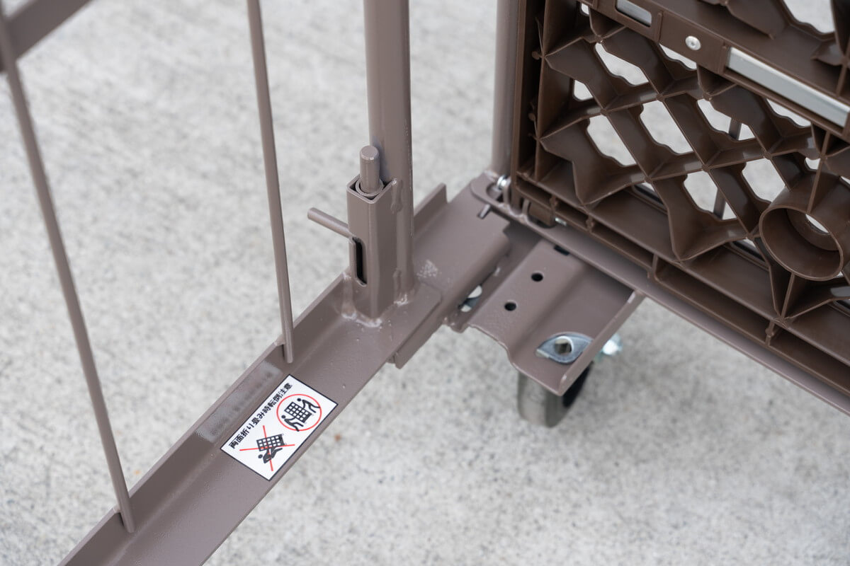 - 両面を折りたたんだ状態ではカゴ台車は自立しません。