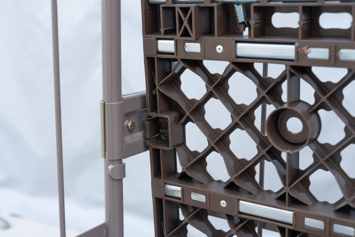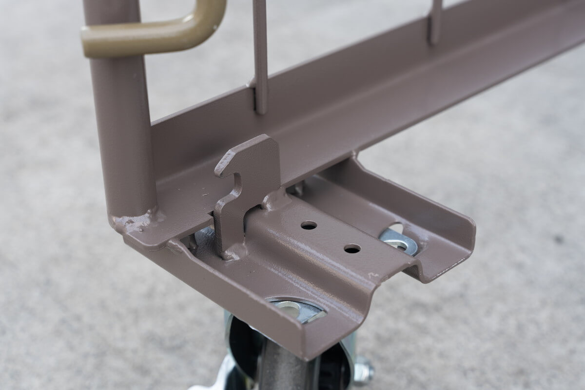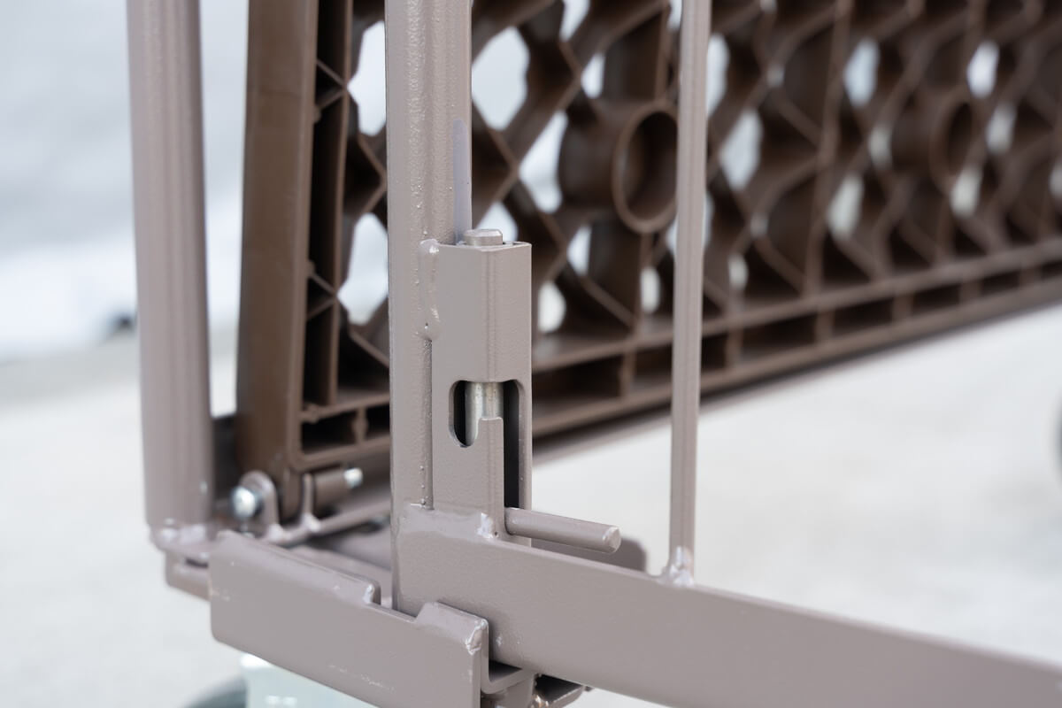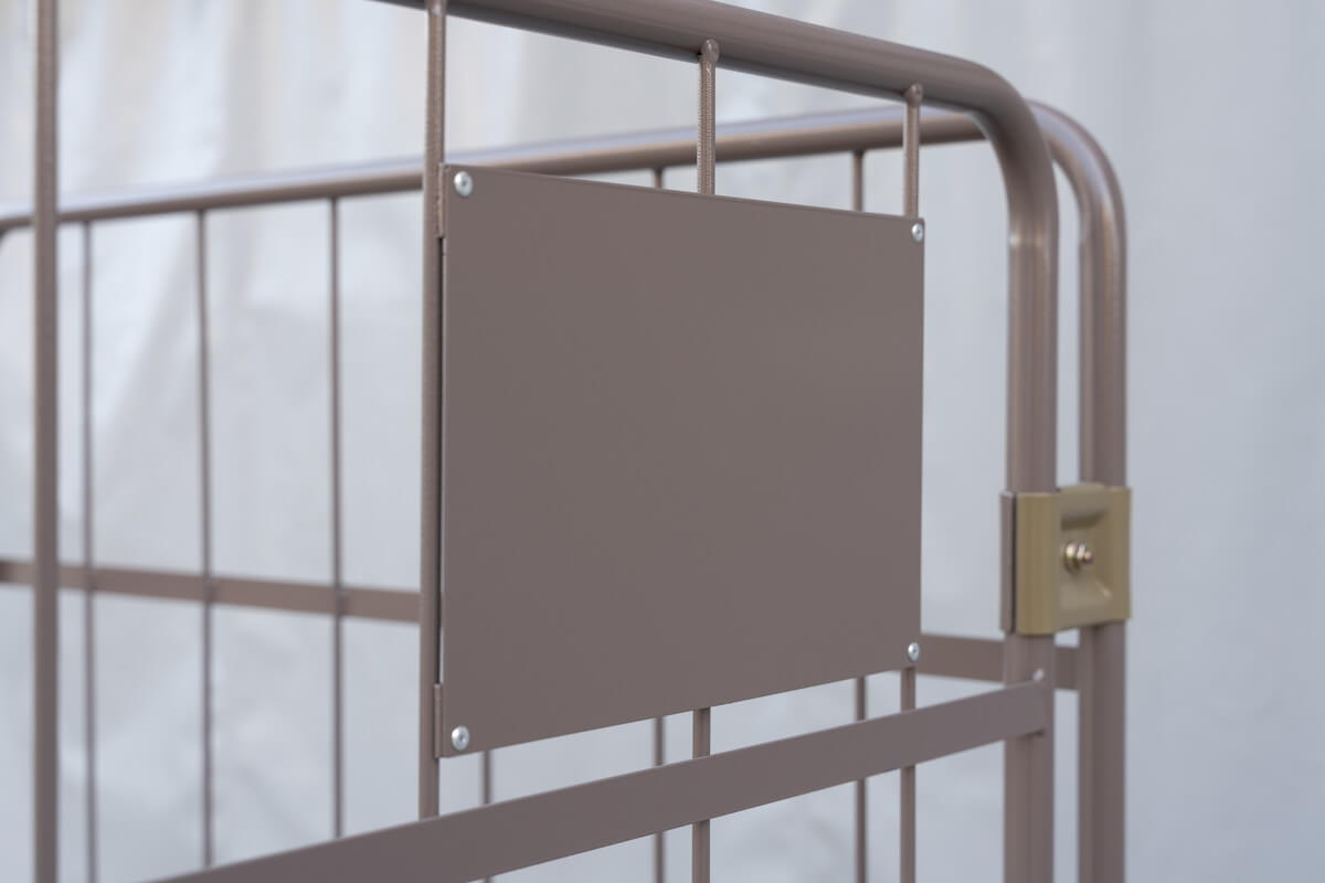 - 両面を折りたたんだ状態ではカゴ台車は自立しません。