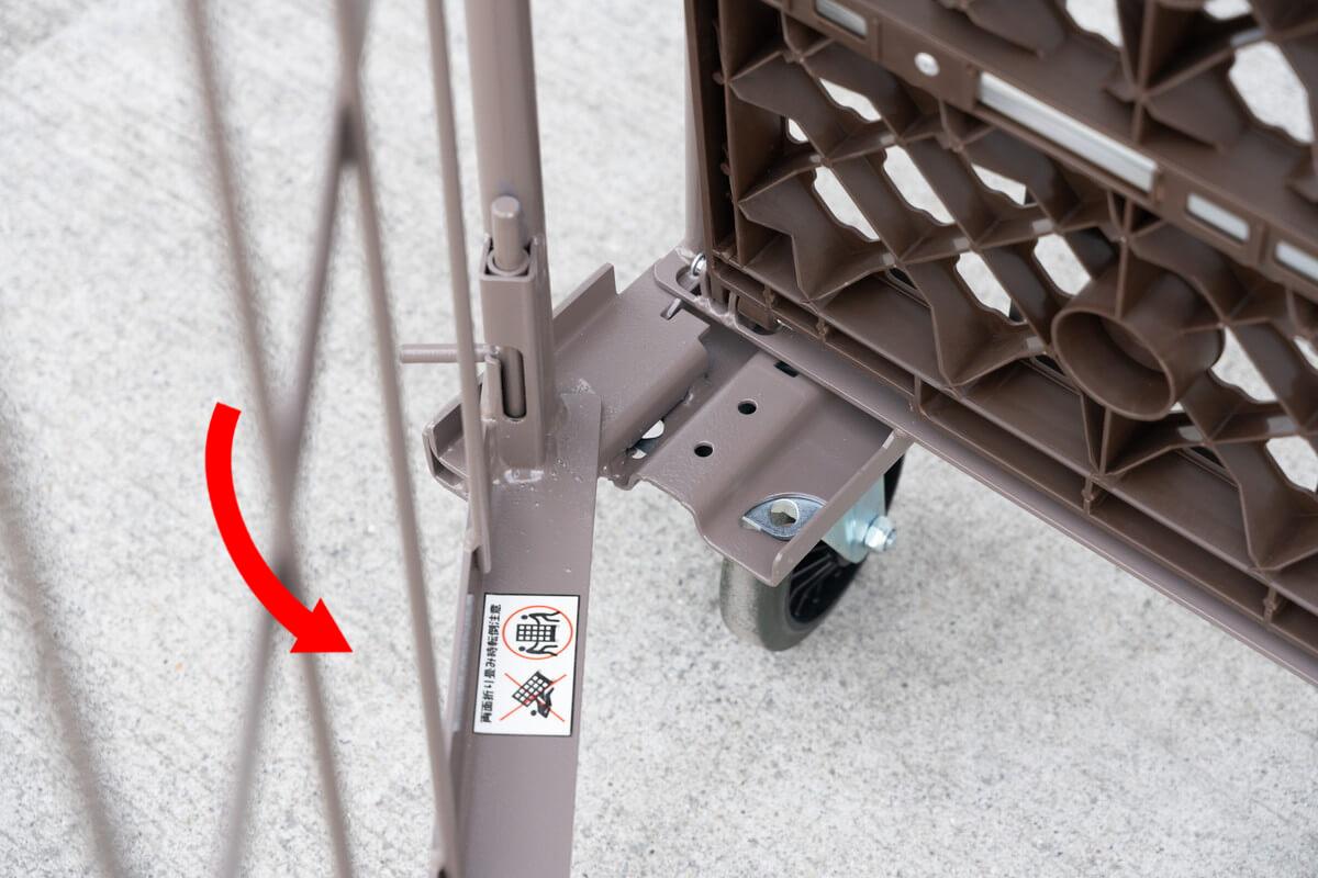左右のフレーム両方をパタパタと折りたためる仕様なので、カゴ台車が非常にスリムに!