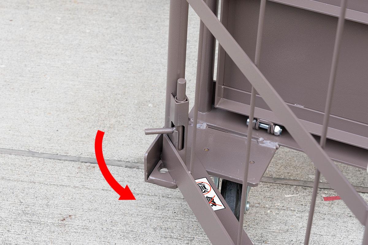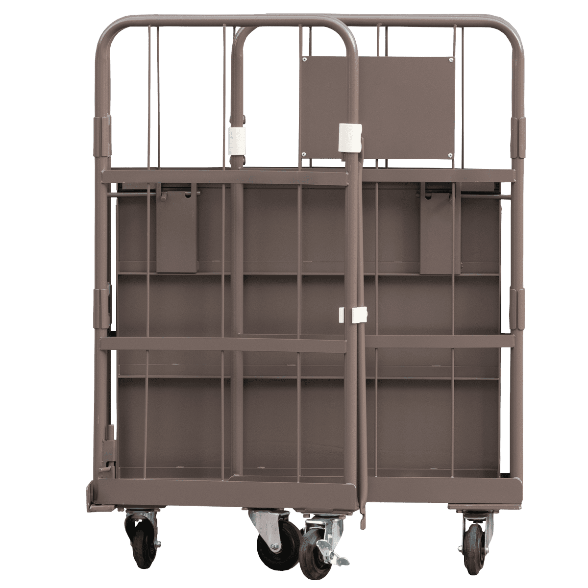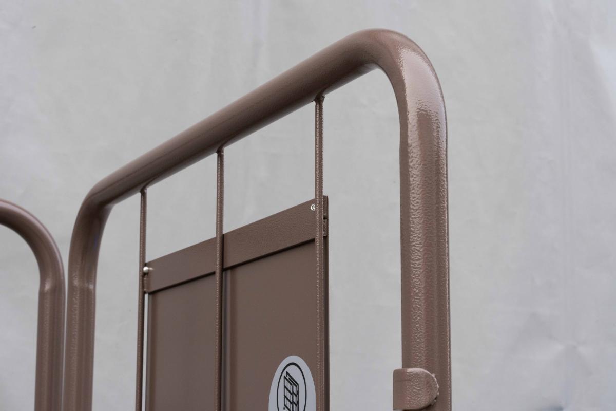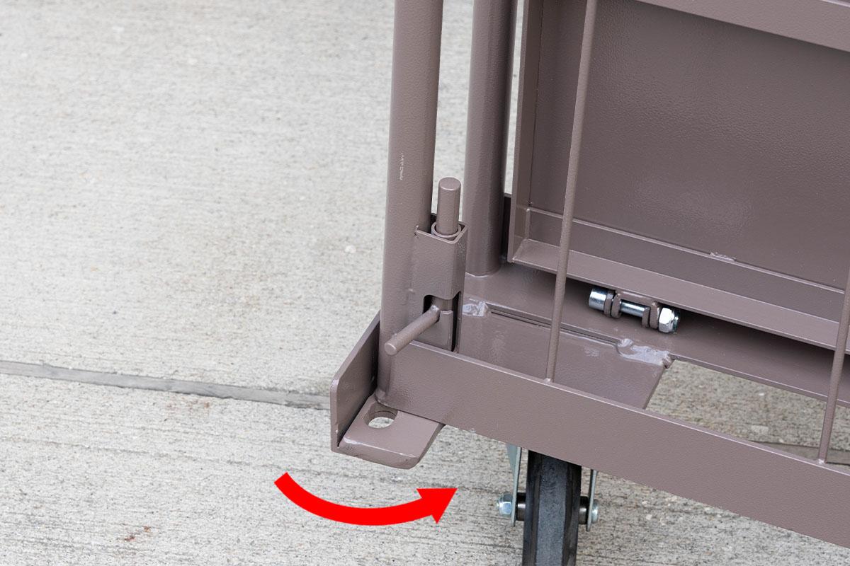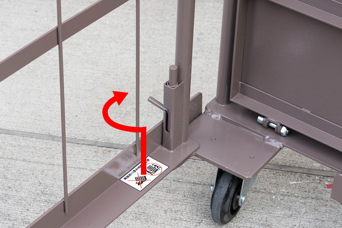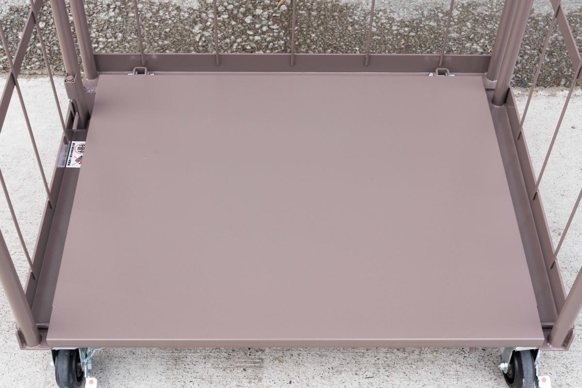 - 両面を折りたたんだ状態ではカゴ台車は自立しません。