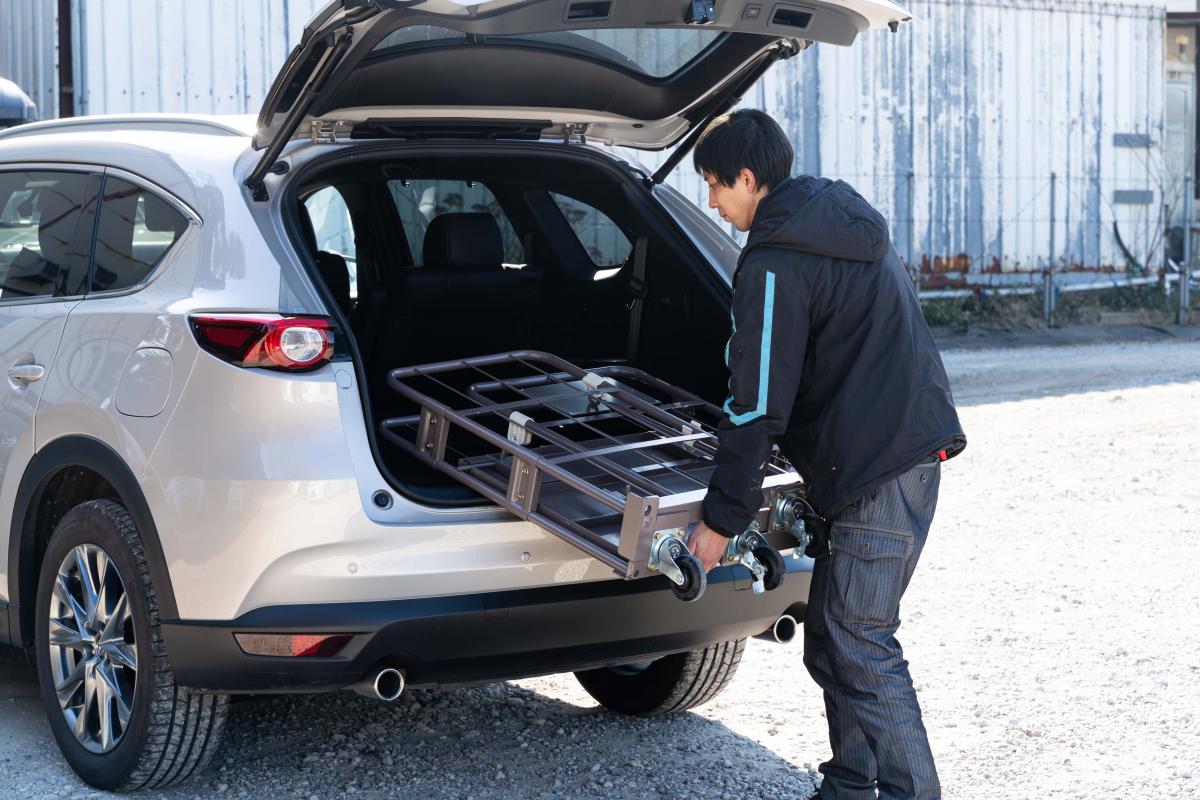 また、その小ささも相まって、今まで困難だったセダンタイプやステーションワゴンの様な全高の低い乗用車や軽自動車にも積み込みが可能となります。