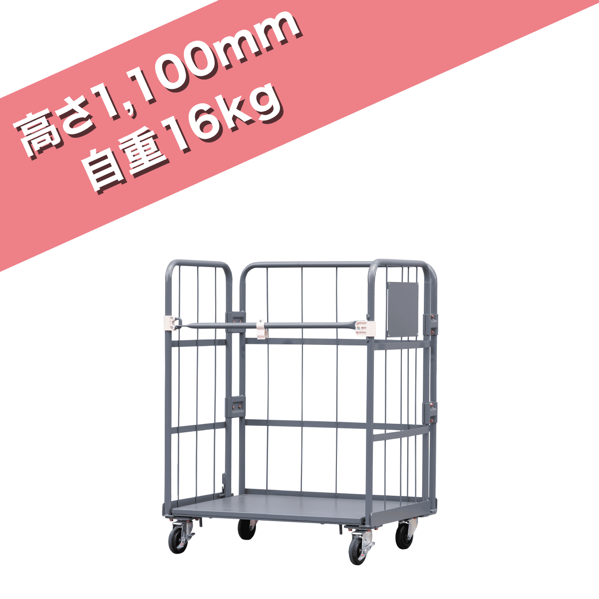一般的な規格サイズであるH1700mmのカゴ台車よりも600mm低いH1100mm!