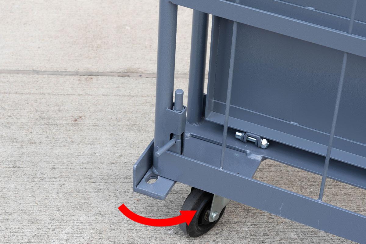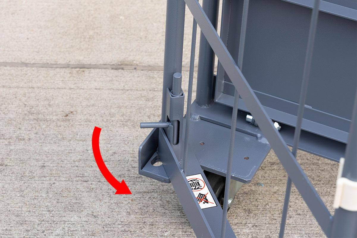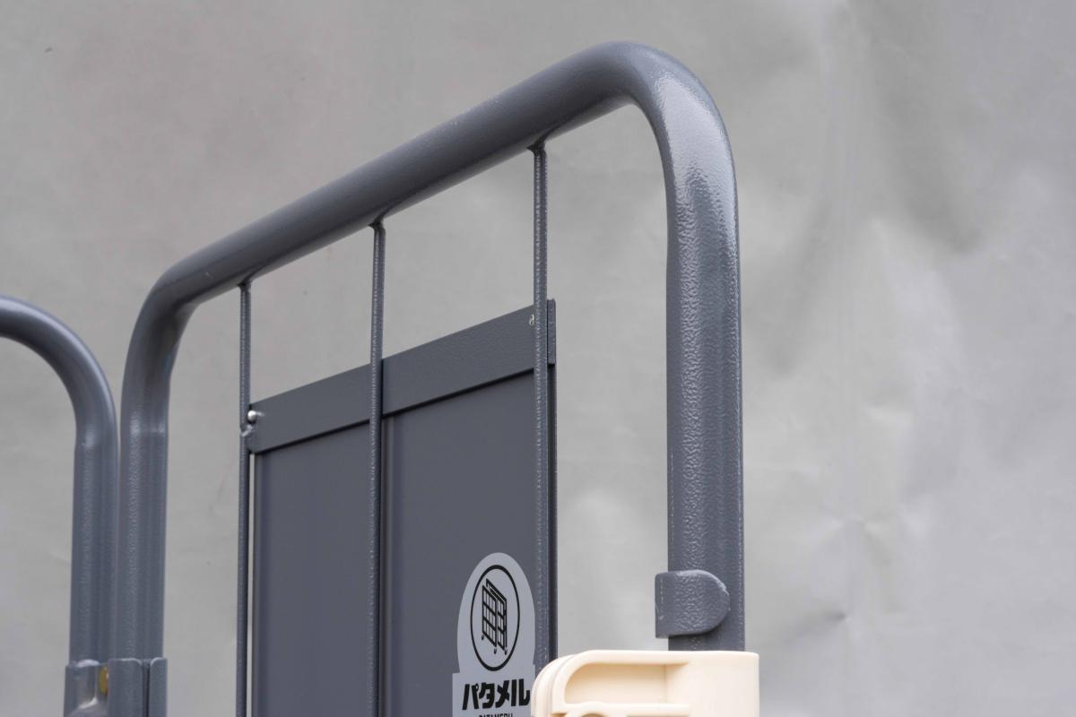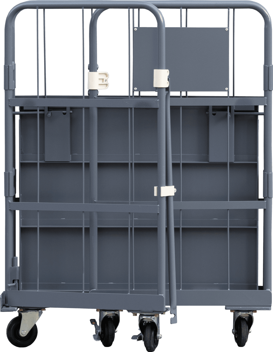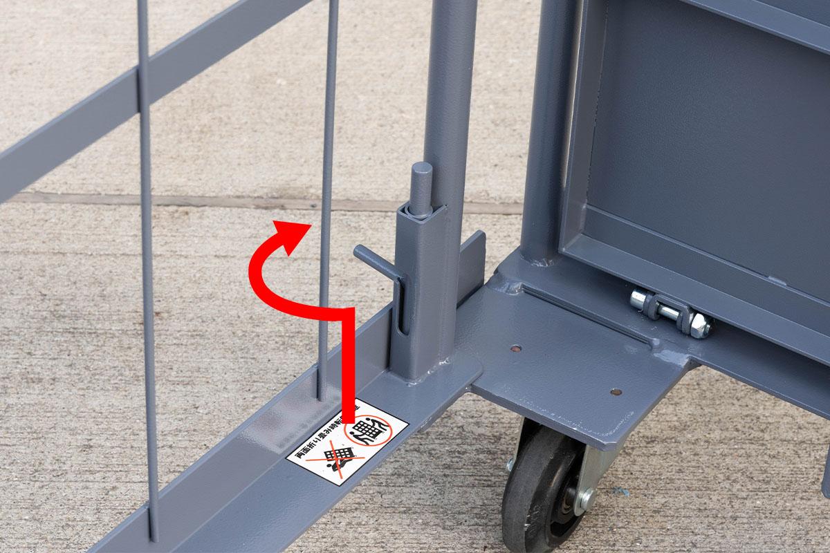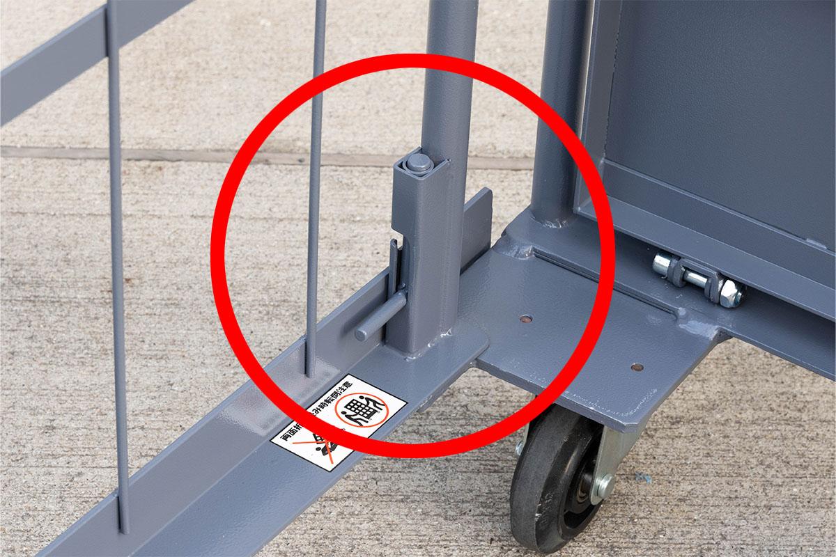 - 両面を折りたたんだ状態ではカゴ台車は自立しません。