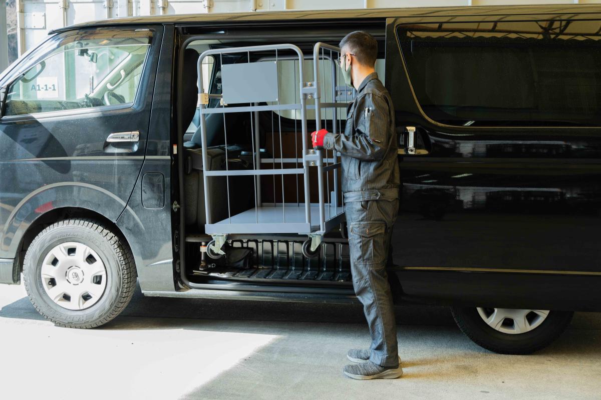 また、小型で軽量だからこそ車への積み込みもラクラク。ハイエースにはスライドドアからの搬入も可能です。様々な現場で幅広く活躍する姿は、まさに天使。