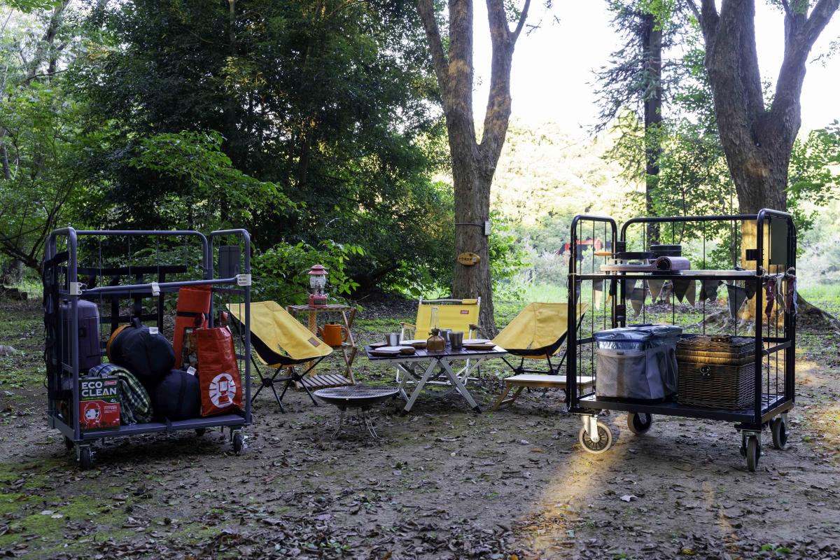 アウトドアやキャンプの際に使用した場合の『天使のカゴ台車』をご紹介します。