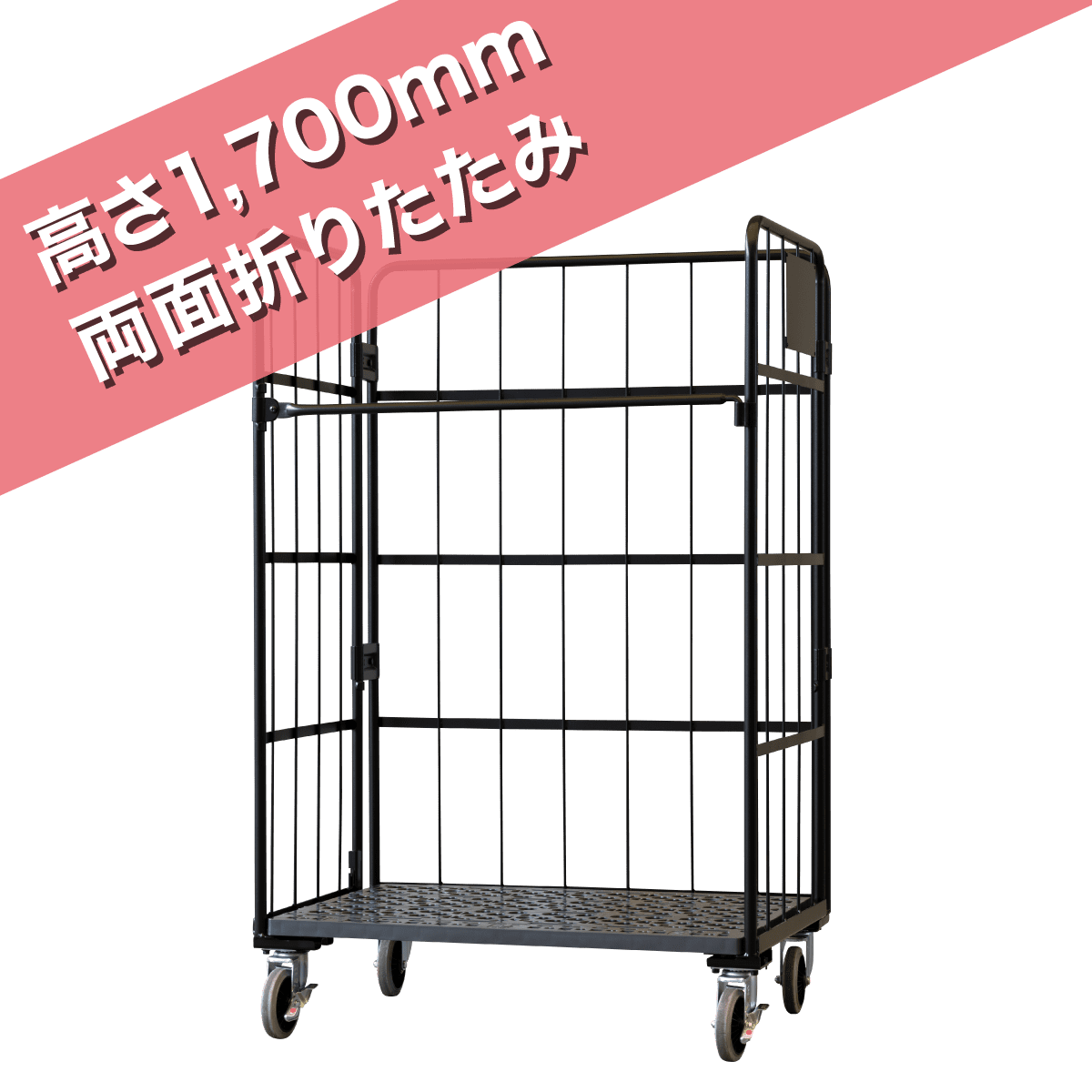 【販売終了】【新品】俺のカゴ台車 ブラック W1100×D800×H1700 両面折りたたみ式【在庫限定品】