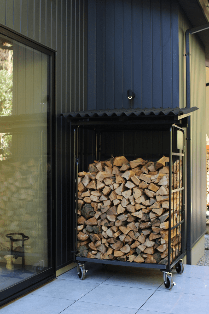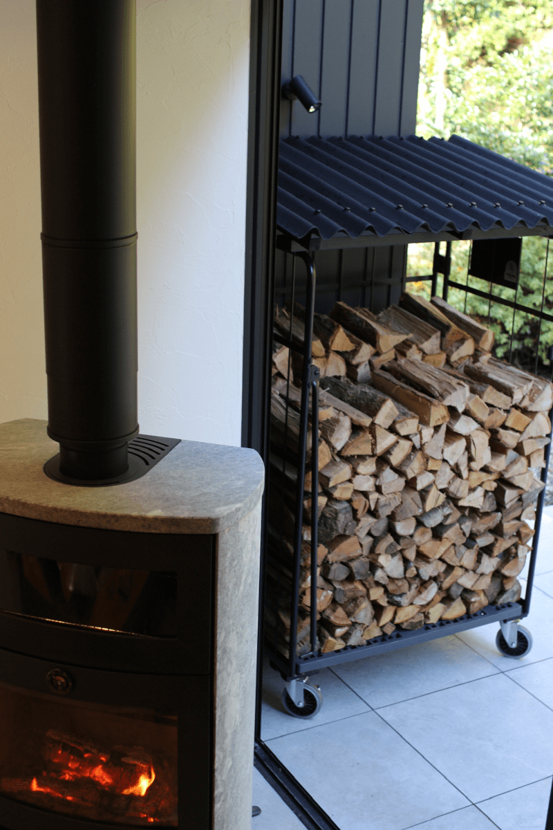 実物の作りはとてもしっかりしていて、またボディの質感もツヤツヤしすぎず、とてもスタイリッシュでした。タイヤの動作も滑らかで、移動できる薪棚としてとても便利です。