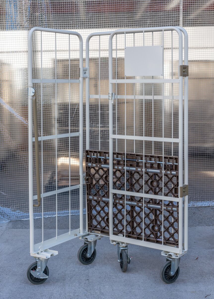 - 中古カゴ台車につき、多少キズやサビ、汚れ等がございますが、機能は問題ございません。