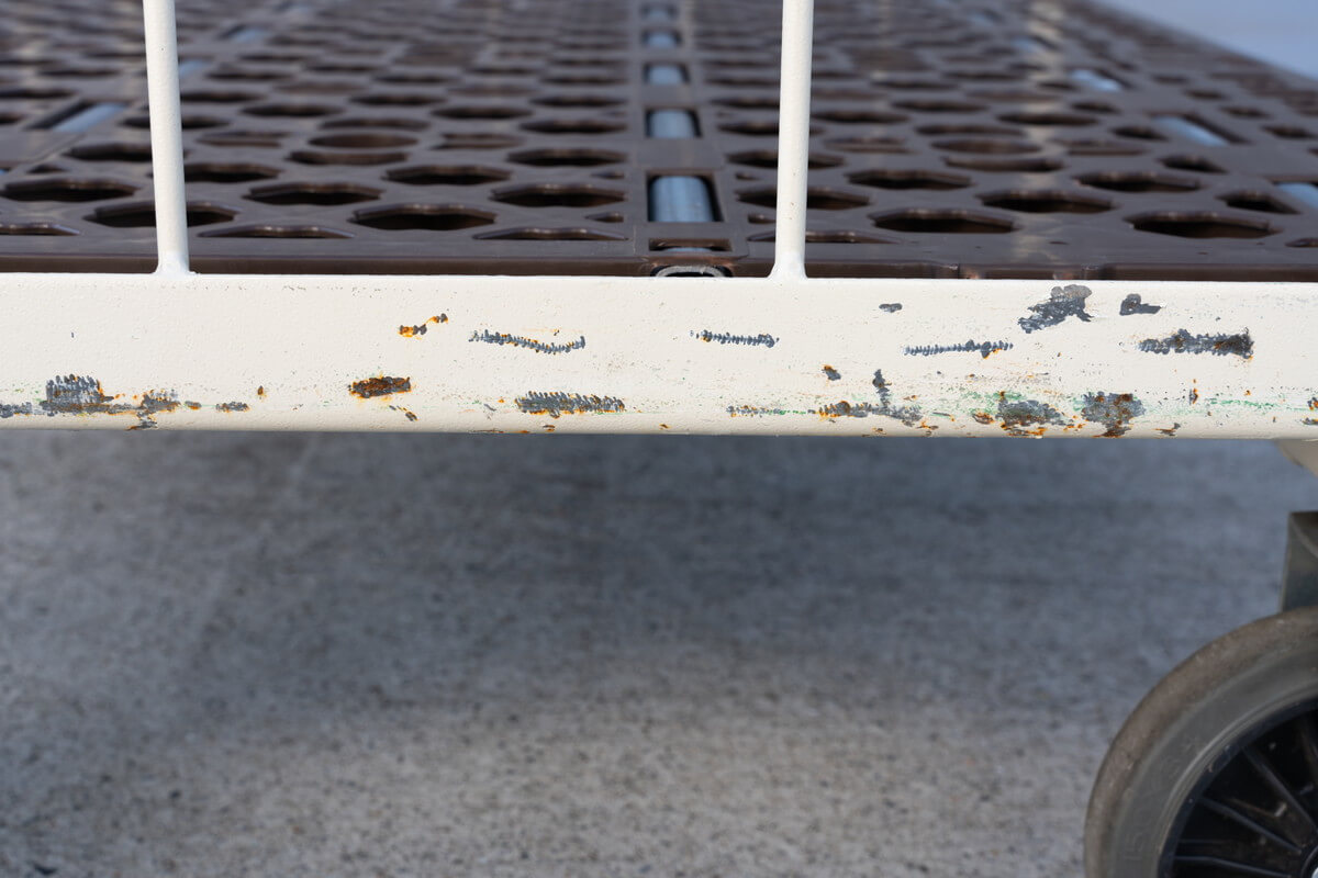 - 中古カゴ台車につき、多少キズやサビ、汚れ等がございますが、機能は問題ございません。