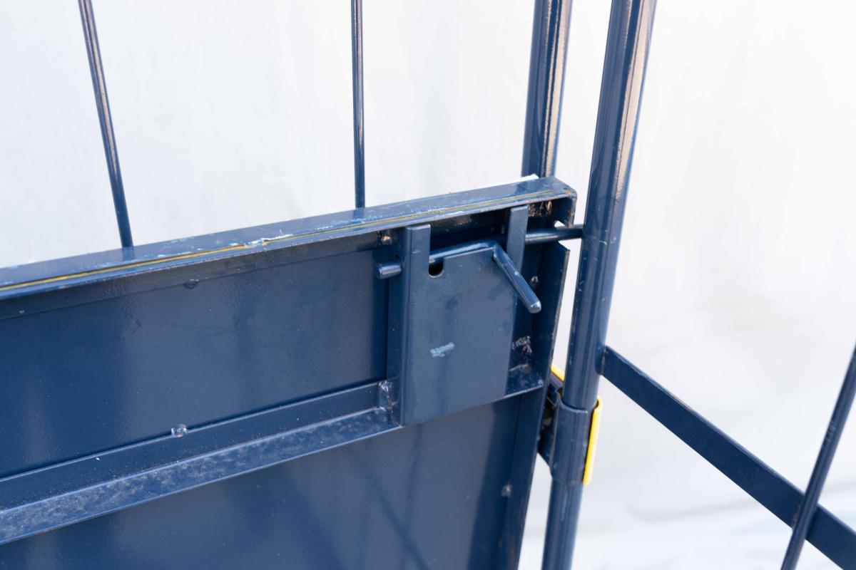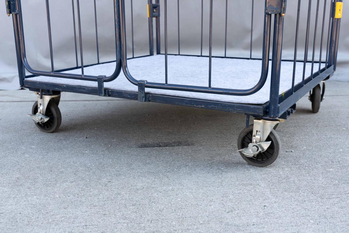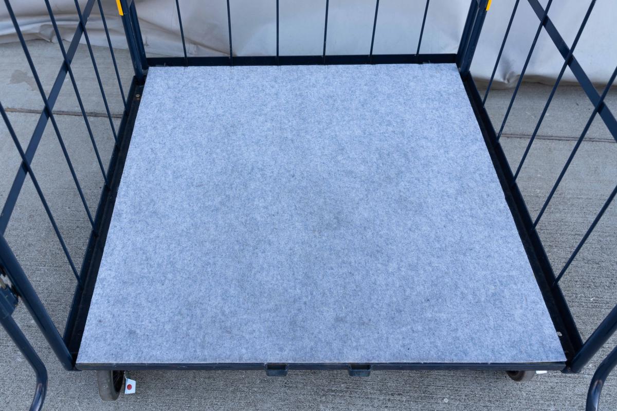 【販売終了】【中古】観音扉付きカゴ台車 W1050×D1050×H2100 ネイビー 床板鉄製(フェルト生地付き)