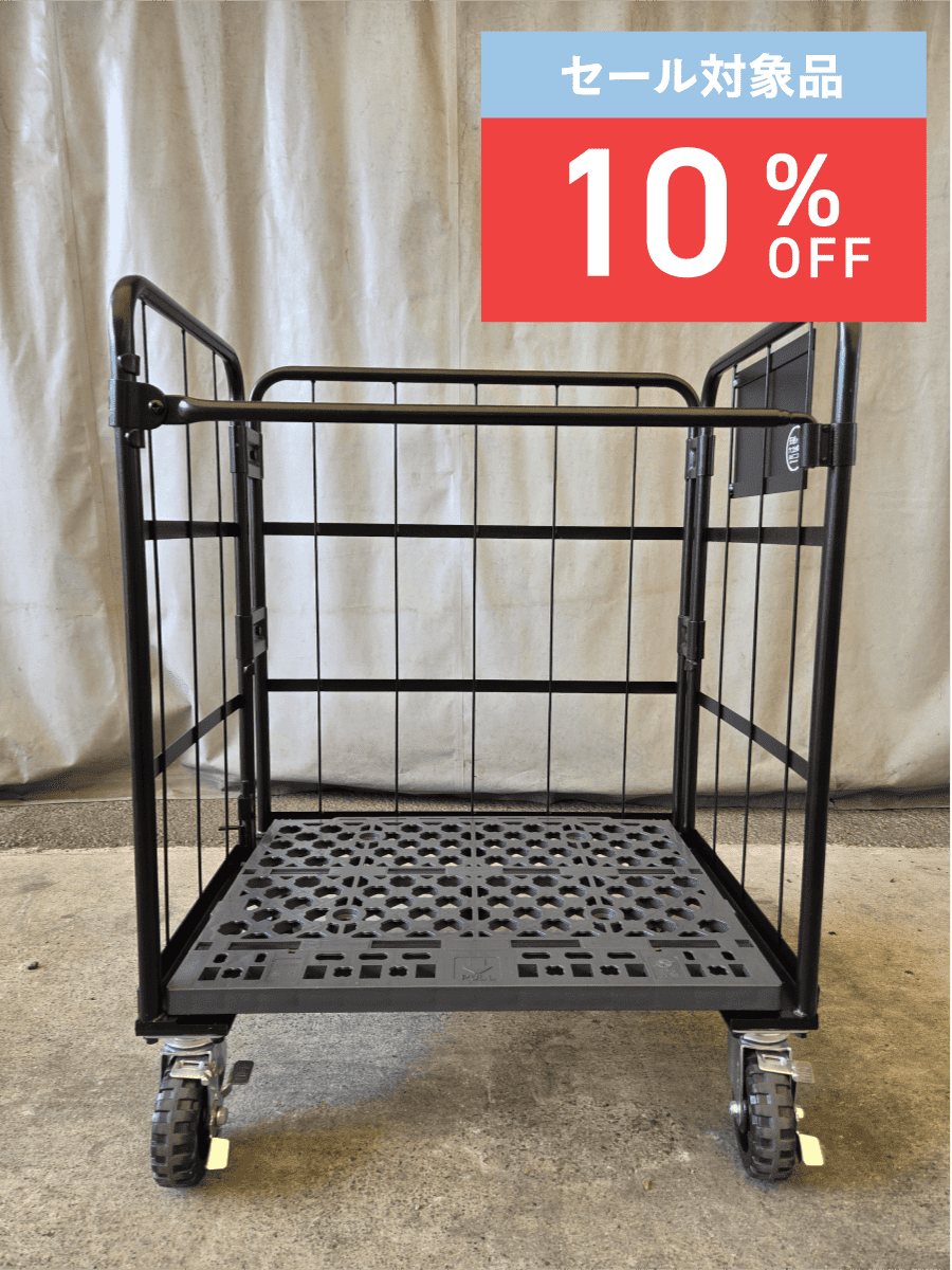 「天使のカゴ台車 ブラック W850×D650×H1100 タフキャスター仕様 両面折りたたみ式」の中古を販売いたします!!