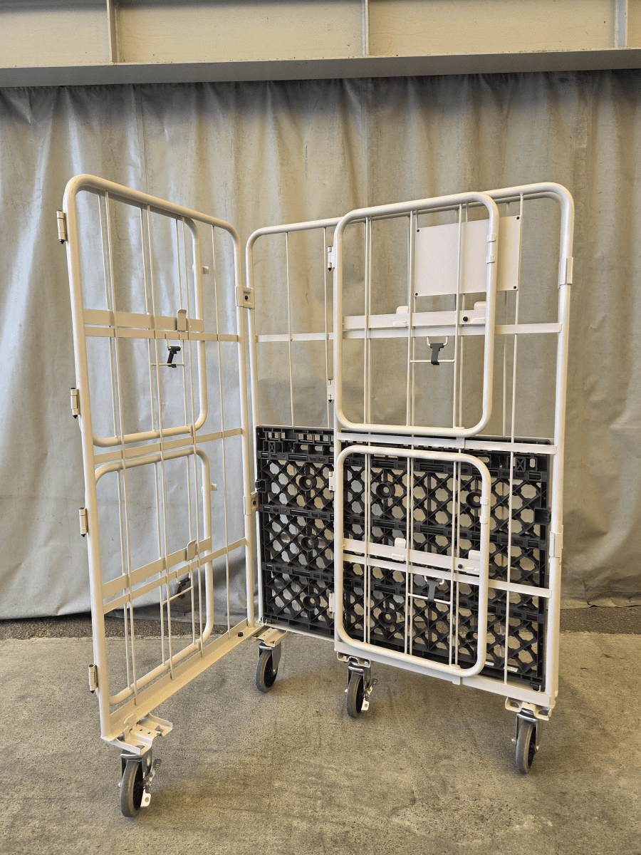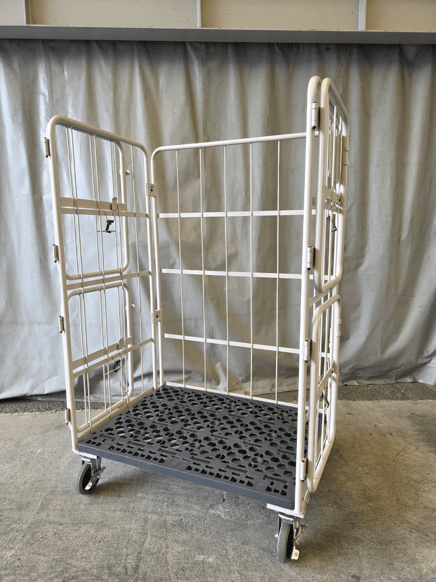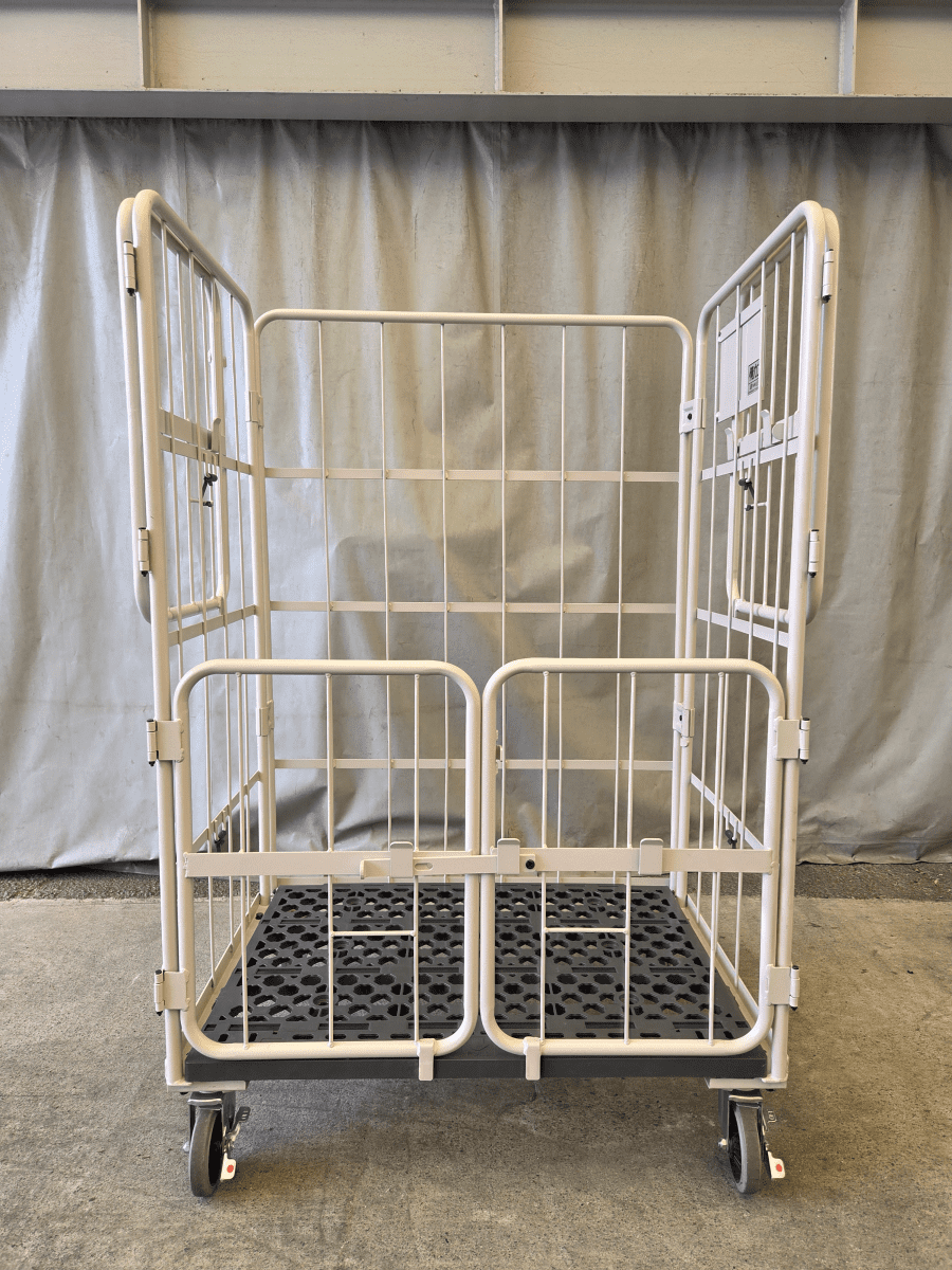 「俺のカゴ台車」シリーズに観音扉付きが新たにラインアップ!しかも規格仕様では業界初の上下扉でございます!