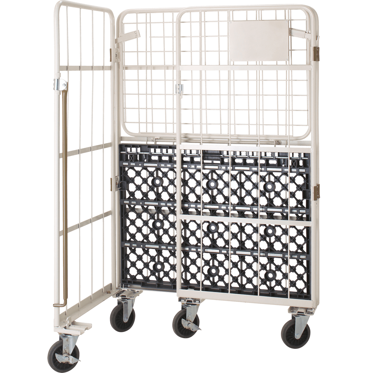 【販売終了】【受注生産品】俺のカゴ台車 跳ね上げ式中間棚付き W1100×D800×H1700【1ロット30台~】