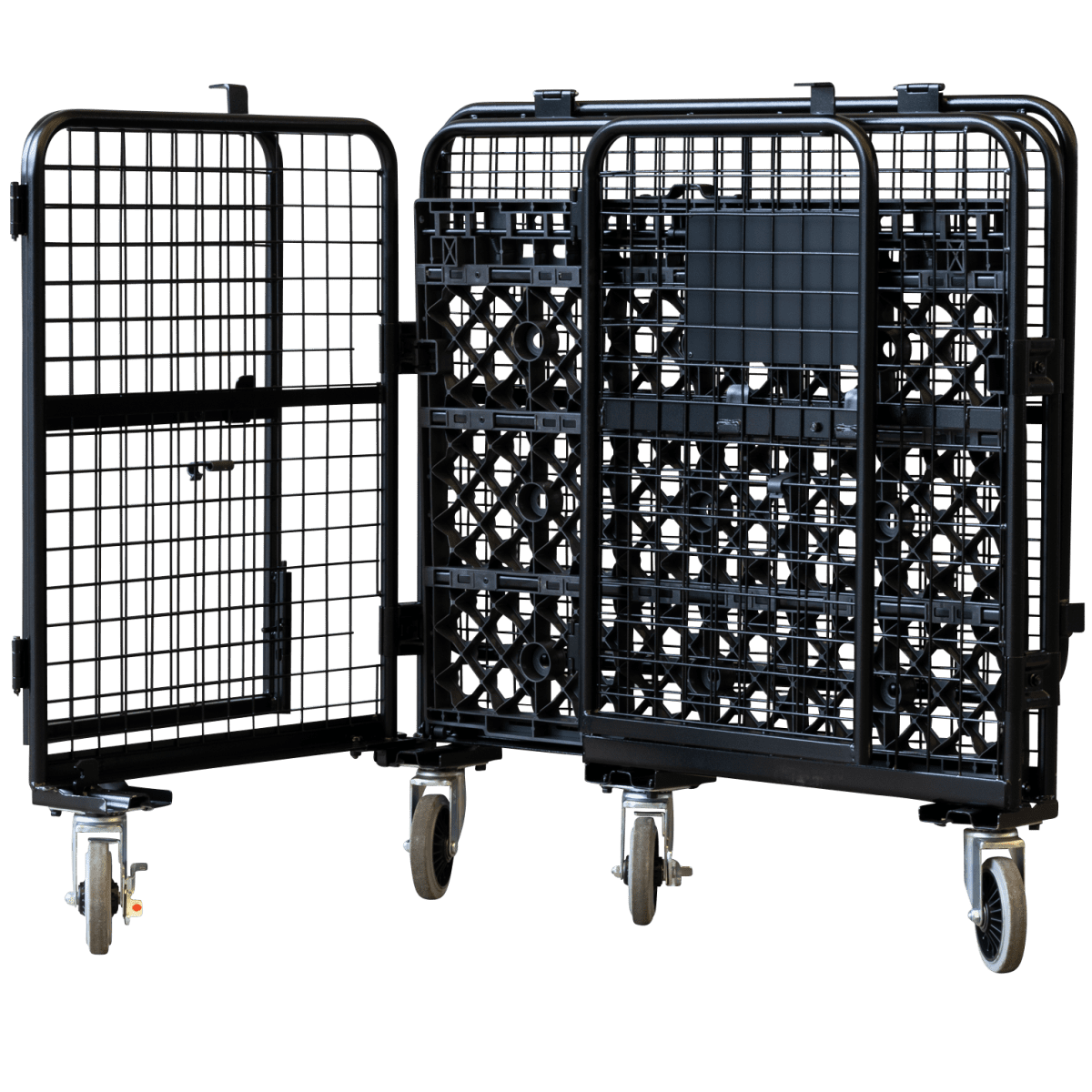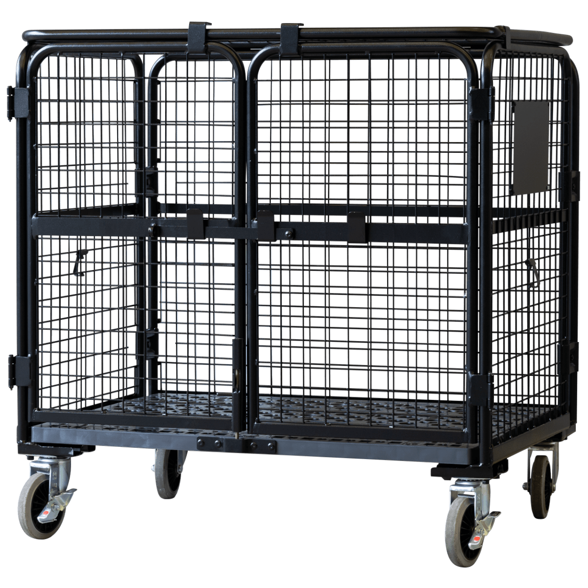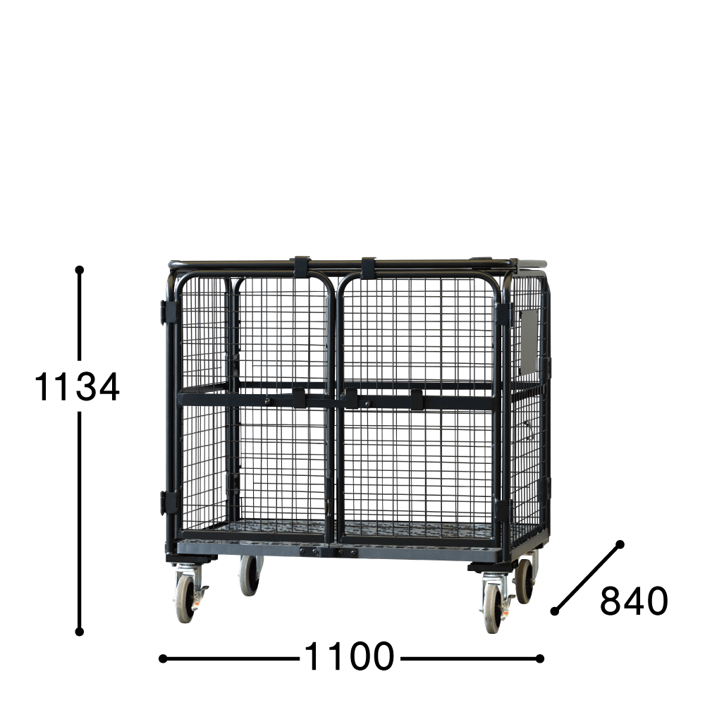 【販売終了】【受注生産品】天使のセキュリティカゴ台車BIG ブラック W1100×D840×H1134【軽量・小型カゴ台車】【1ロット30台~】