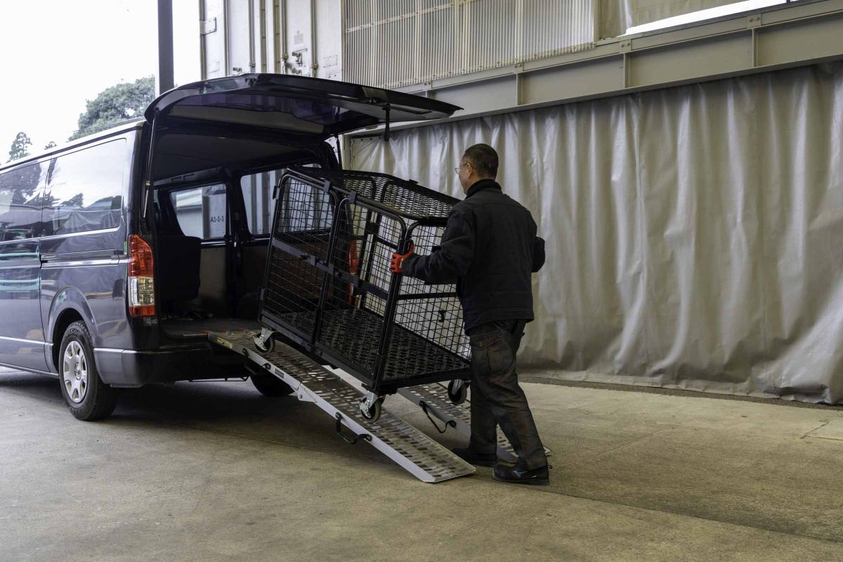 背の低いカゴ台車に切り替えて、ハイエースやバンなどの商用車を使用することで、配送料などの運用コストを削減したいとのご要望から誕生いたしました!