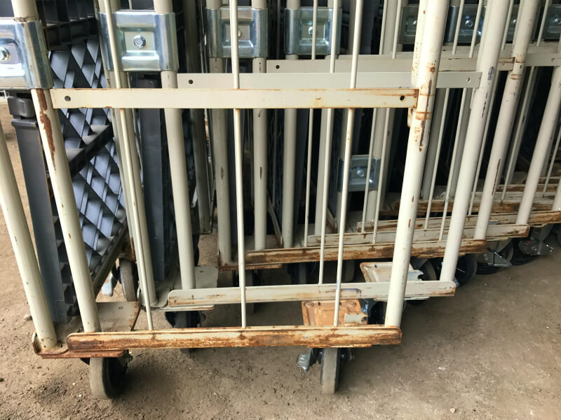 - 中古カゴ台車につき、多少キズやサビ、汚れ等がございますが、機能は問題ございません。