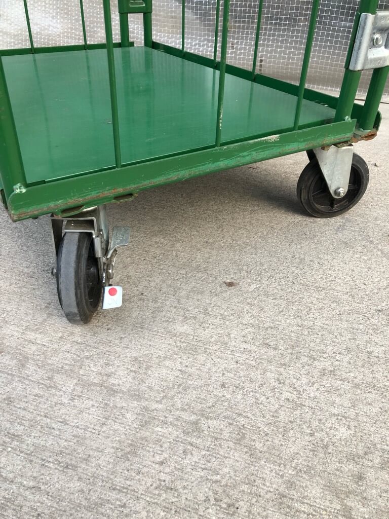 中古の為、若干の汚れやキズ、サビ、歪み等ございますが、非常に状態の良い美品カゴ台車となっております。