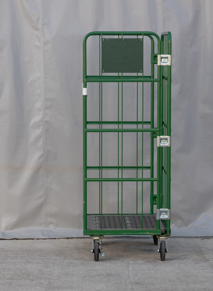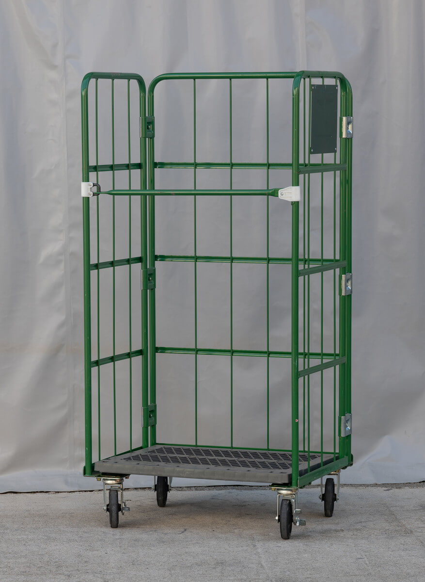 【販売終了】【中古】カゴ台車 W850×D650×H1700 本宏製作所製 グリーン【限定1台!】