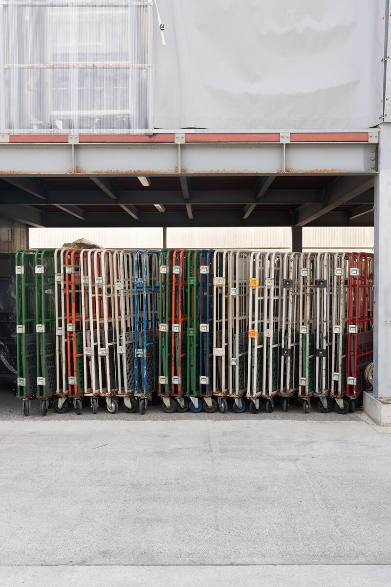 - 中古カゴ台車につき、多少キズやサビ、汚れ等がございますが、機能は問題ございません。