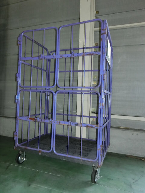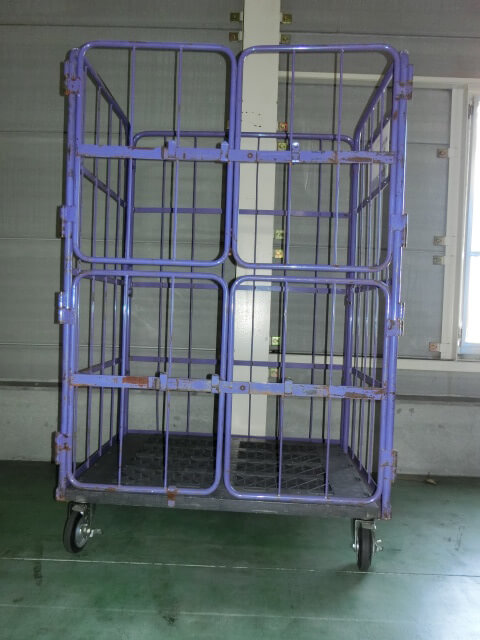 ご好評をいただいております、こちらの上下観音扉タイプかご台車(ロールボックスパレット)。