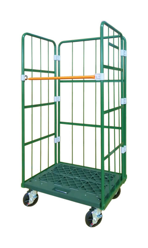 樹脂底タイプのカゴ台車です。ジョイントに樹脂を使用していることで、積み荷、荷おろし、移動時の騒音を軽減。当たりがソフトな為、荷物だけでなく、壁などへの損傷を低減。