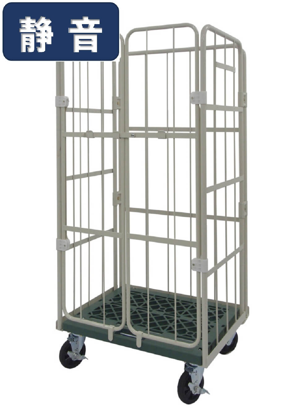 荷物の落下を防ぐ観音扉付きカゴ台車です。樹脂製の扉ヒンジにより、動きがスムーズで静音性に優れています。