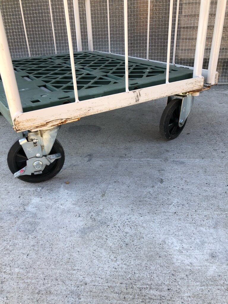 - 中古カゴ台車につき、多少キズやサビ、汚れ等がございますが、機能は問題ございません。