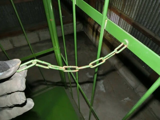 最も需要が多い人気のサイズよりも少し背の高い、とても使いやすいカゴ台車です。開き止め用のチェーンも付いています。